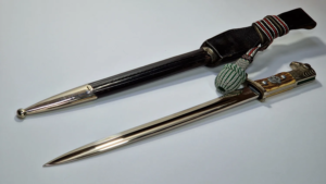A superb original Hitler Youth (HJ) drum ensemble, complete and untouched, offering the drum itself, both original skins, the scarce square-ended HJ drumsticks, the leather drumstick frog, and the... read more