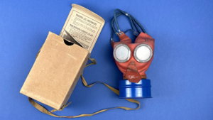 The iconic and famous Micky Mouse gas mask, worn by allied children during WW2. Made to look like the famous cartoon character of the same name to lessen the horror of the war, and also having to... read more