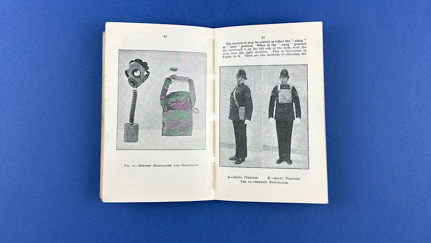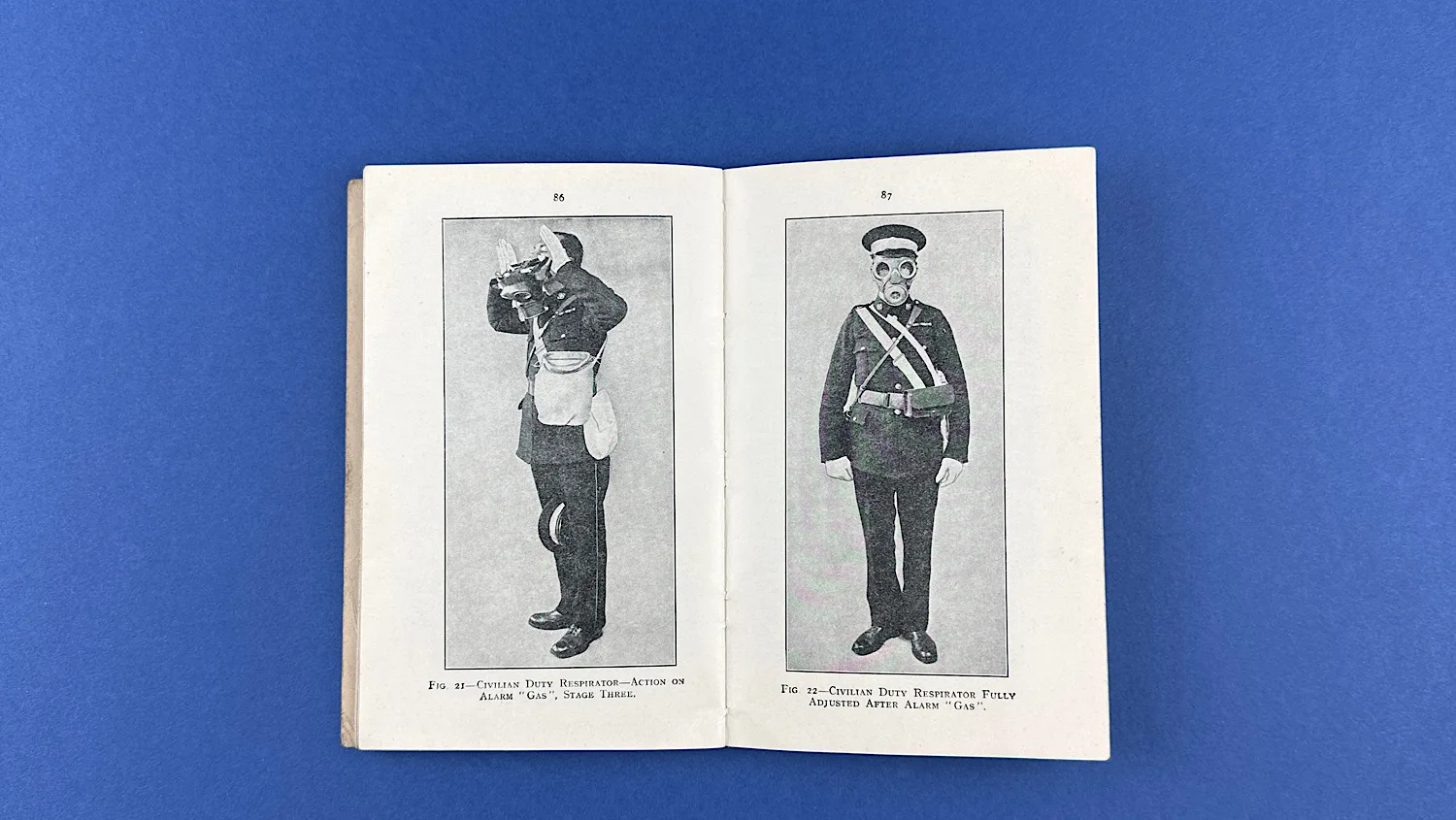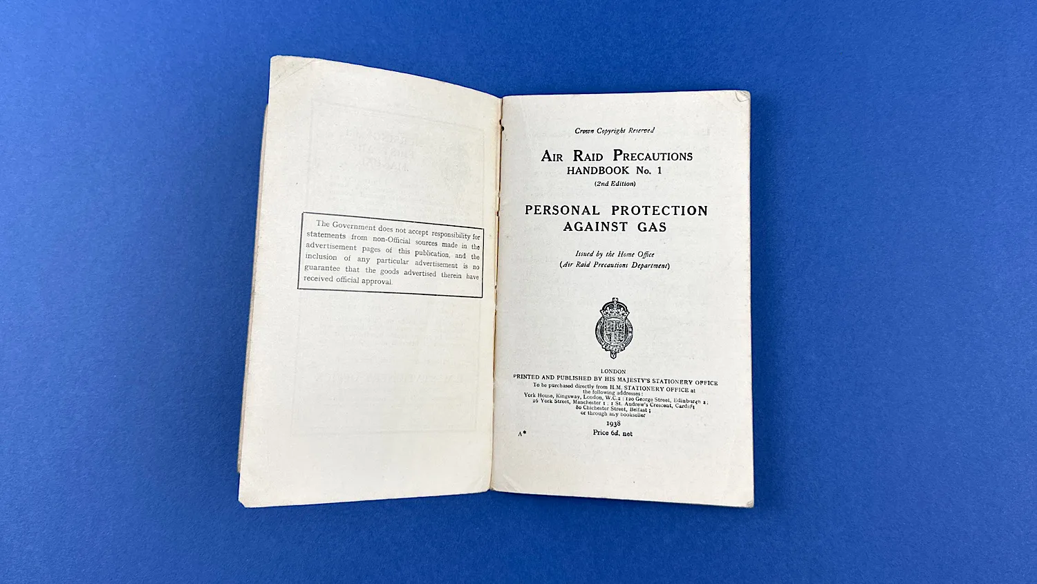 Printed before the outbreak of WW2, it sets out the government’s first formal instructions on recognising different gases, using civilian respirators, basic first aid, and decontamination procedures.