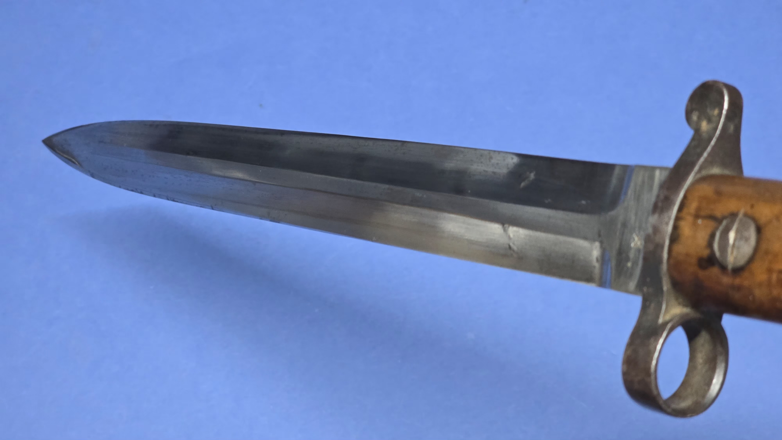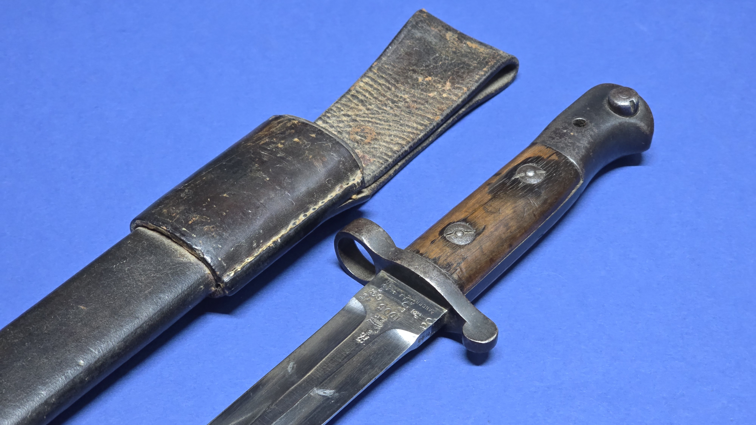 The Pattern 1903 bayonet was introduced for use with the Short Magazine Lee-Enfield rifle during the early 20th century, at a time when British military doctrine was placing renewed emphasis on close-quarters fighting and bayonet training. It replaced the earlier long sword-type bayonets and reflected a shift toward a handier, more practical fighting blade suited to modern infantry tactics.