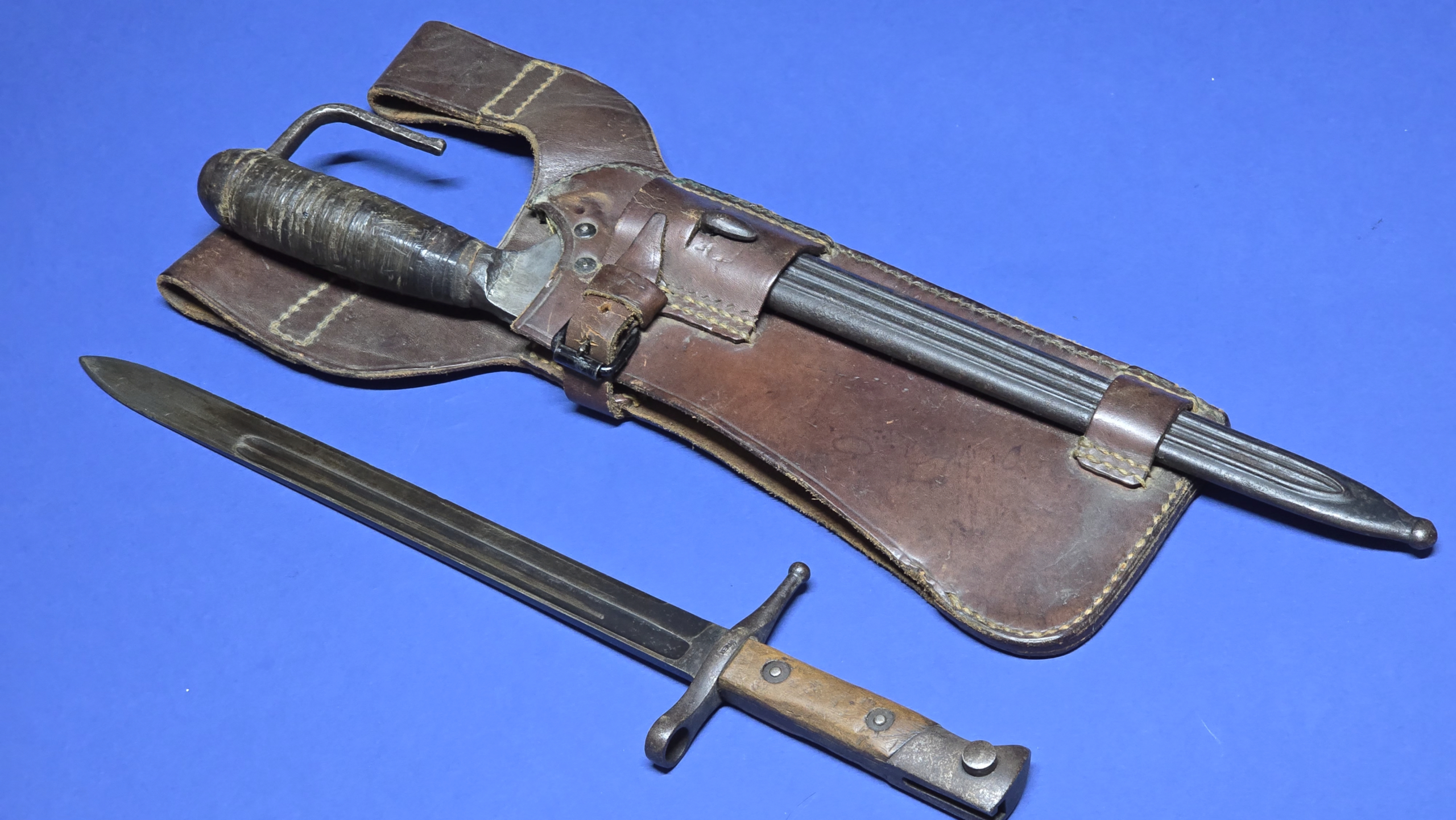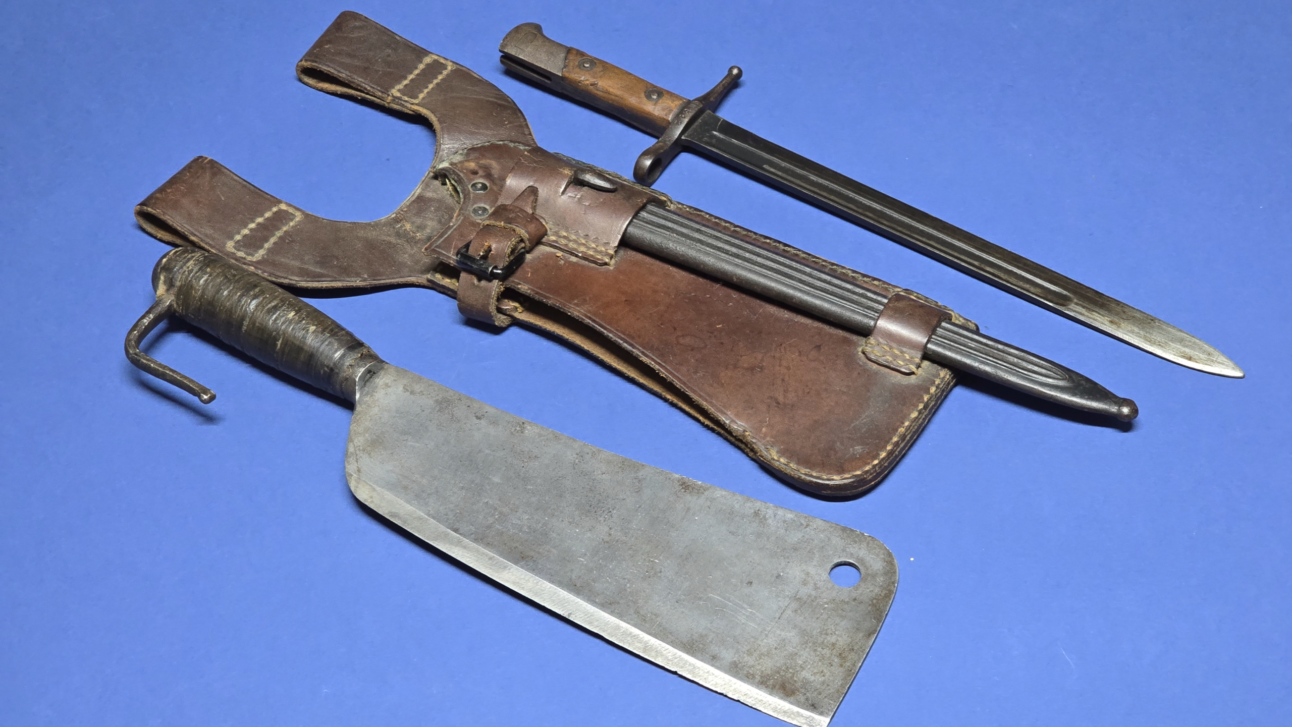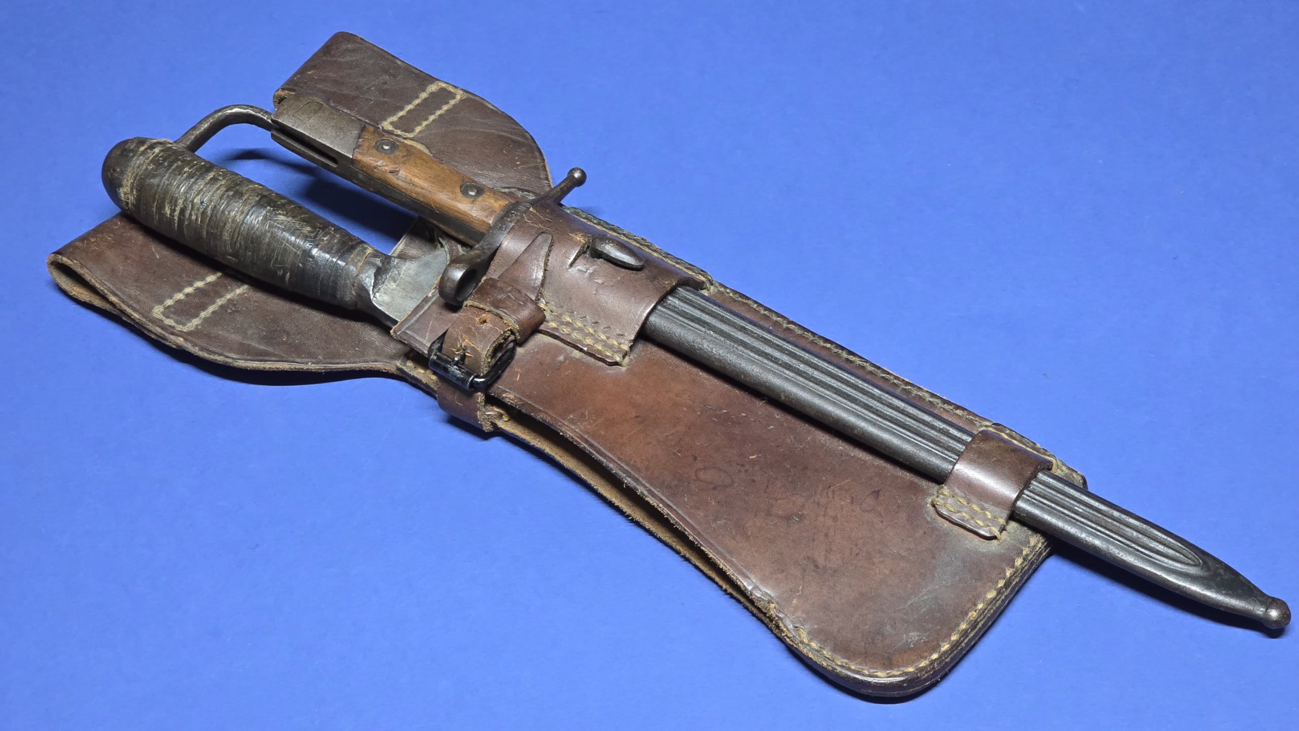 Carcano M1891 “Truppe Speciale” Bayonet & Chopper Set – Complete with Original Leather Carrier (Scarce Set)