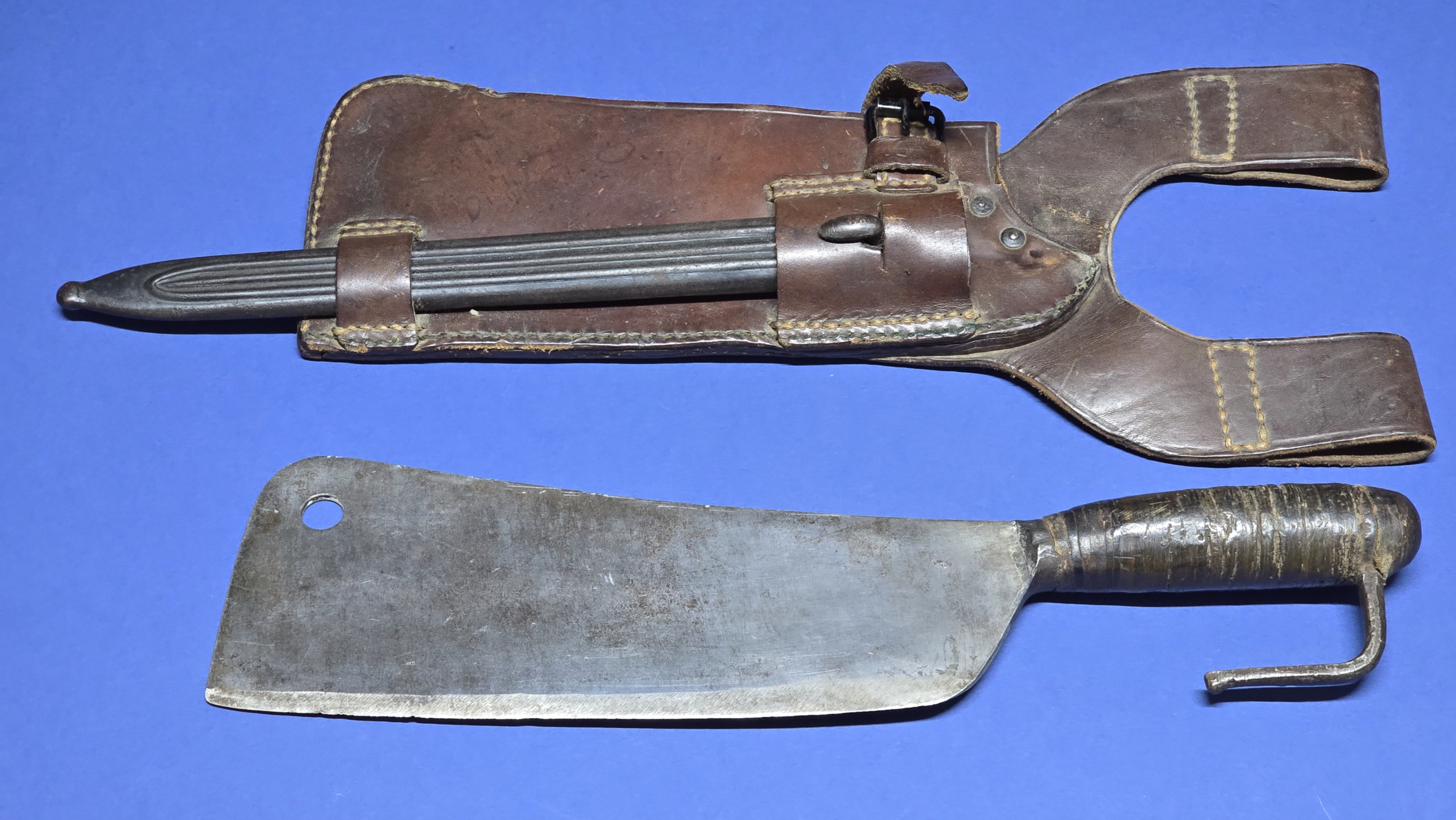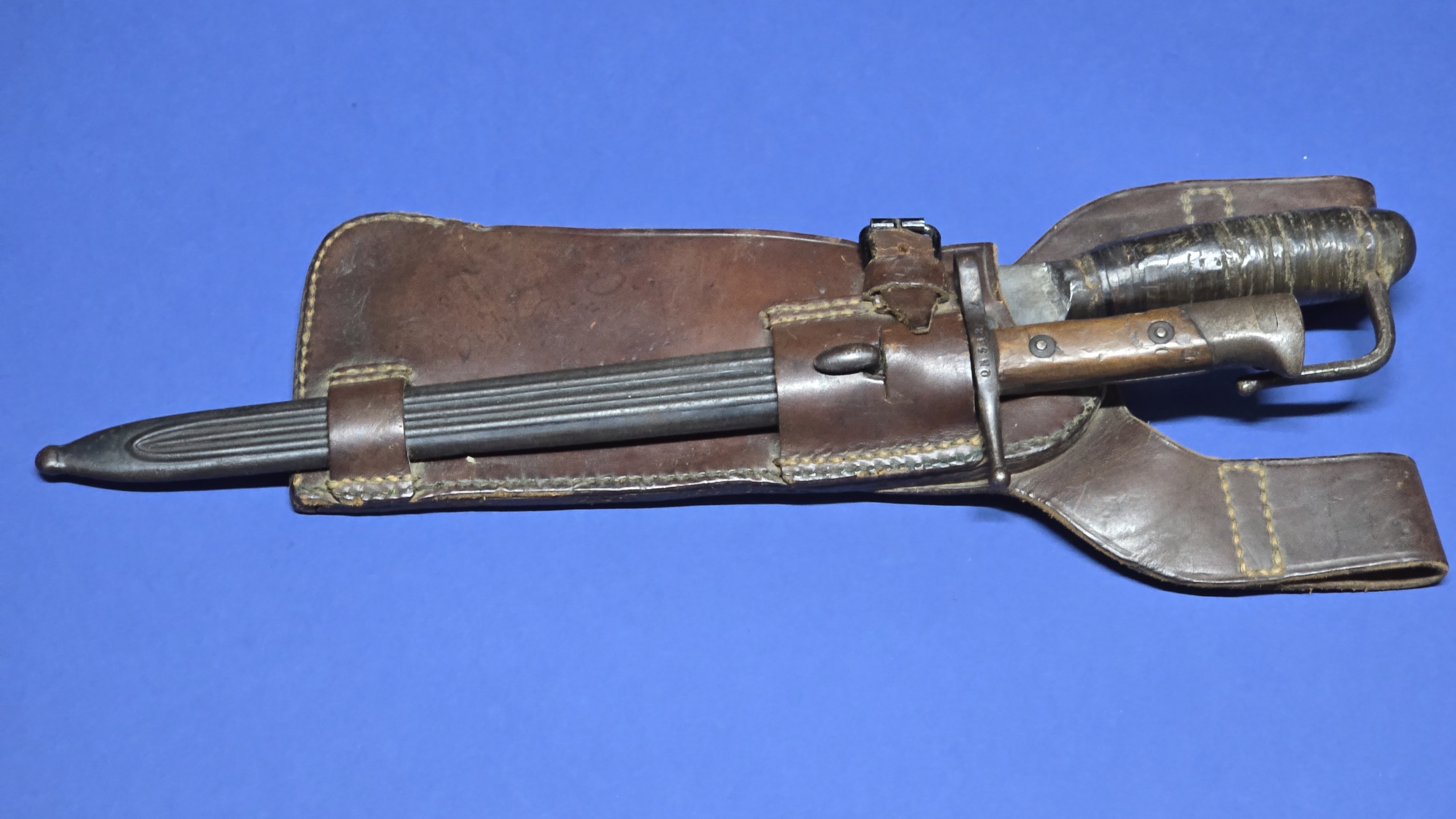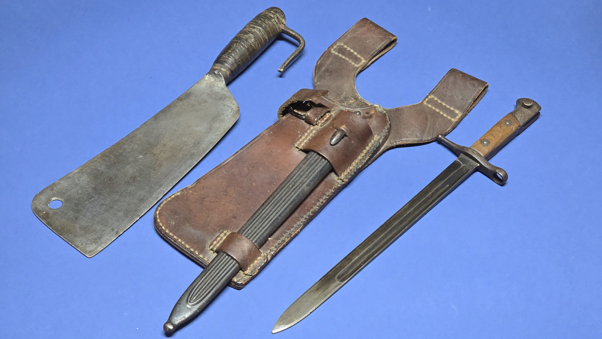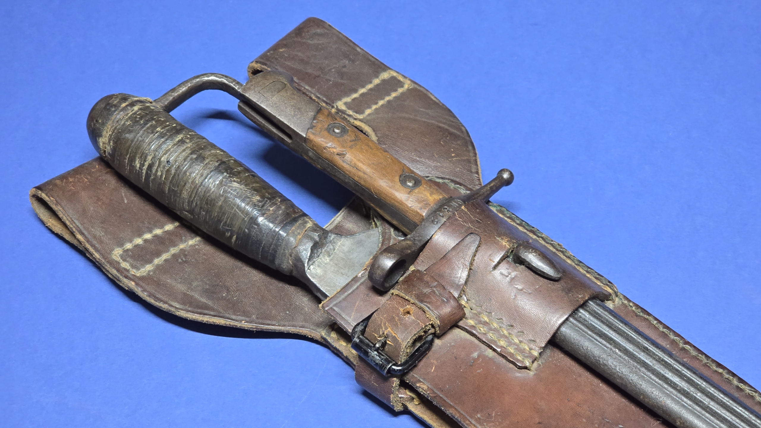 Carcano M1891 “Truppe Speciale” Bayonet & Chopper Set – Complete with Original Leather Carrier (Scarce Set)