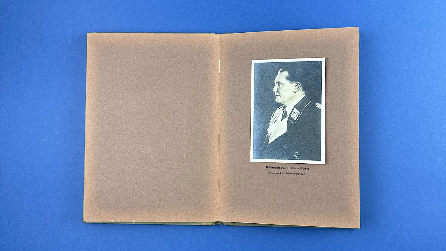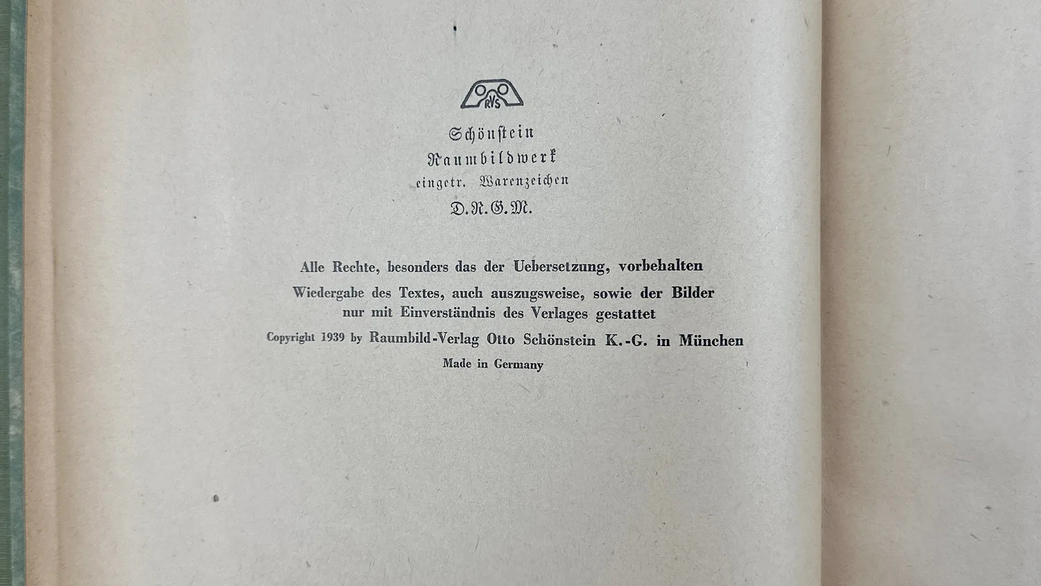 Condition-wise, the book has survived well. All 100 photographs are present and none have been folded or dog-eared. The original folding 3D viewer is present; however, one lens is missing and the remaining lens is blurred. This is reflected in the price and does not prevent the photographs from being viewed. The book retains its original cover, which shows fair wear consistent with age and use. Internally, the pages are in very good condition, with a number of non-3D photographs throughout, including an image of Adolf Hitler himself.