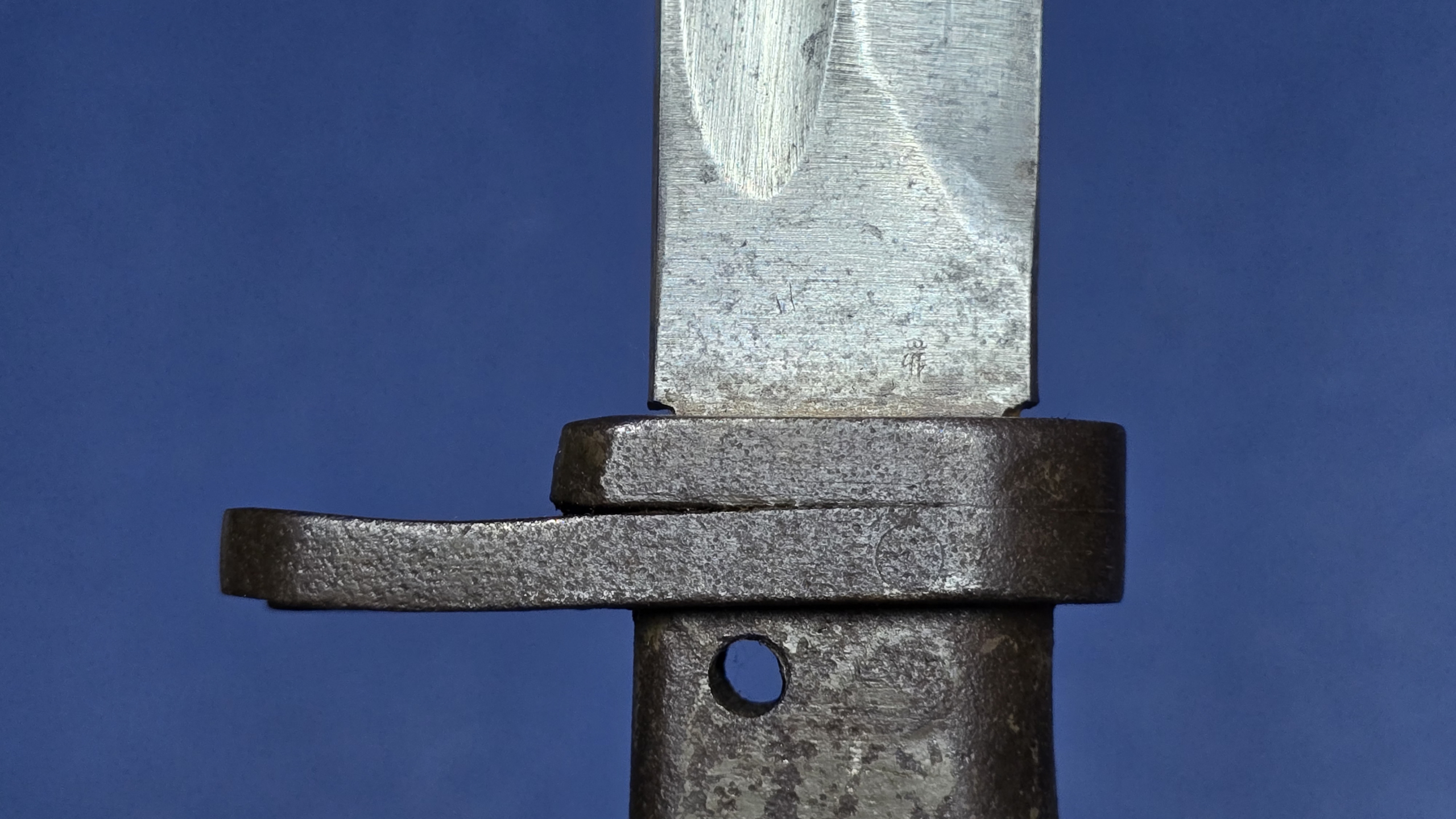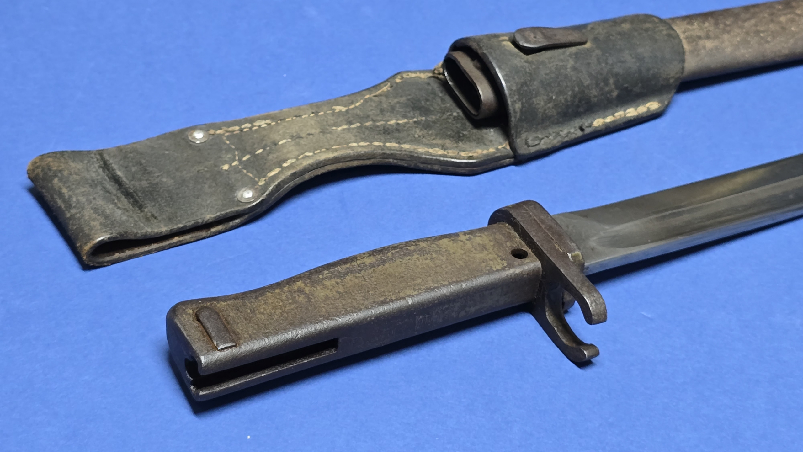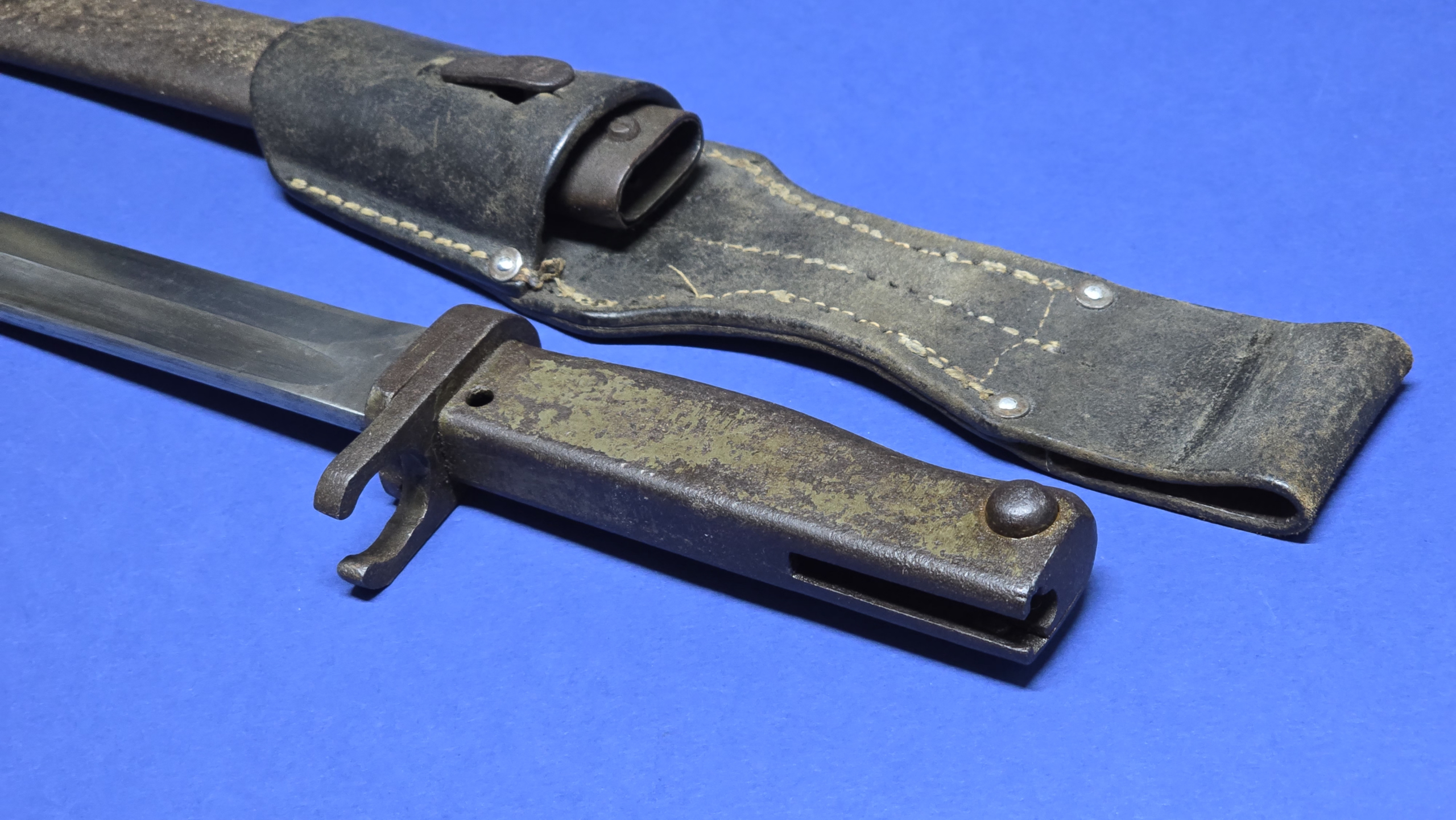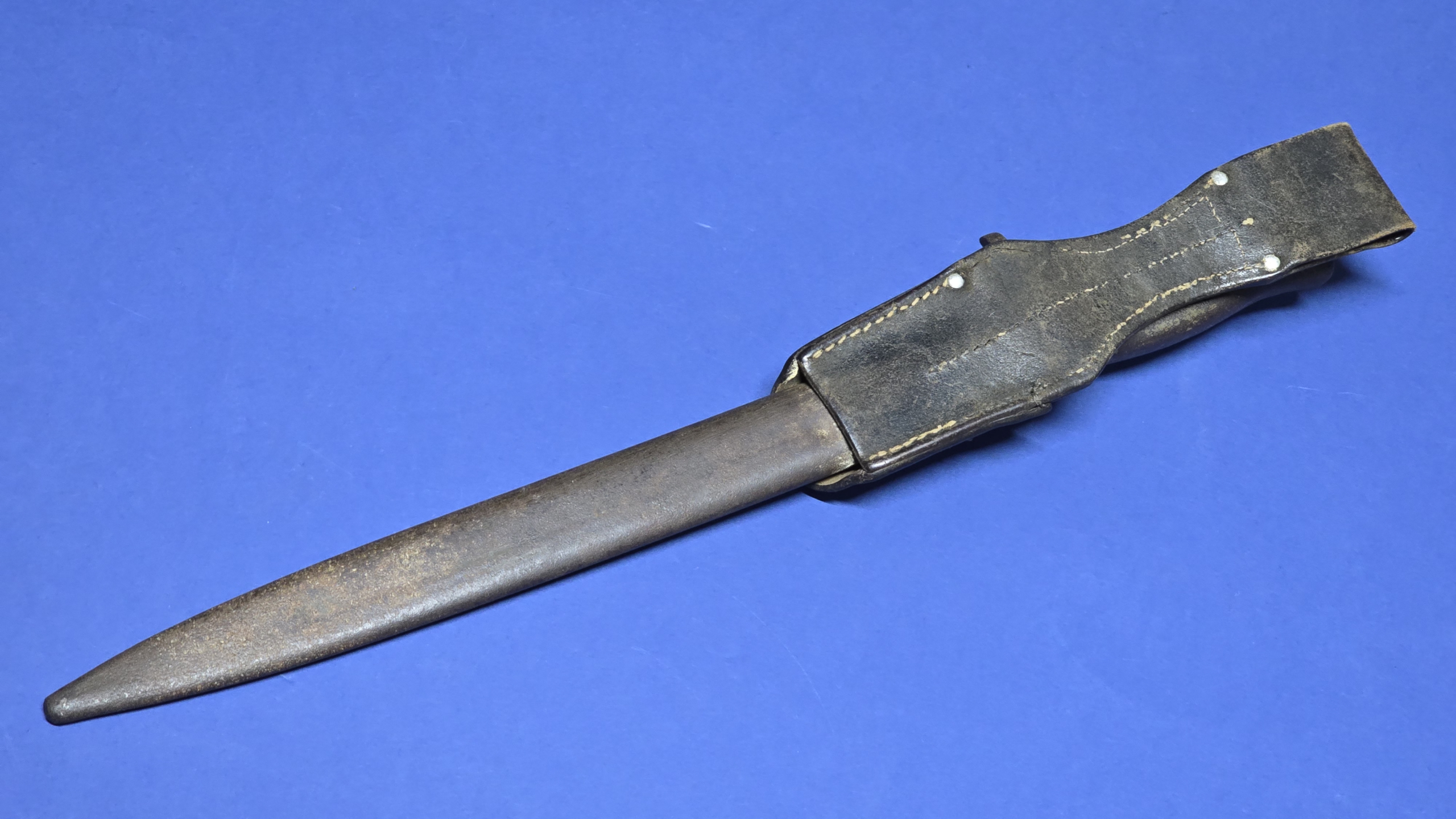 These bayonets were produced in numerous patterns and constructions, often lacking maker marks, with functionality prioritised over appearance. Originally finished with painted surfaces rather than bluing, ersatz bayonets represent a stark reflection of wartime necessity and industrial improvisation, making them an important and increasingly appreciated field of collecting today.