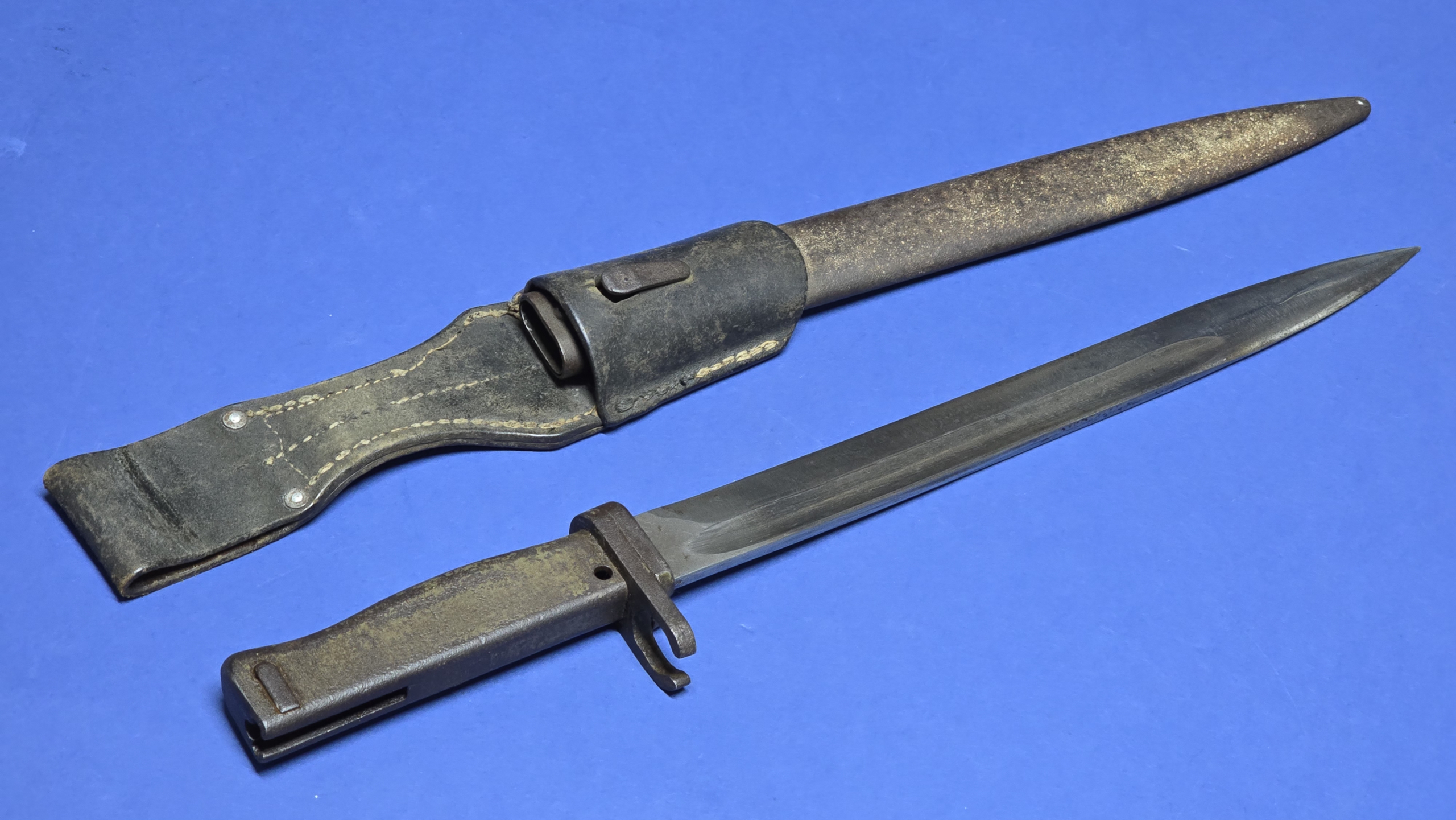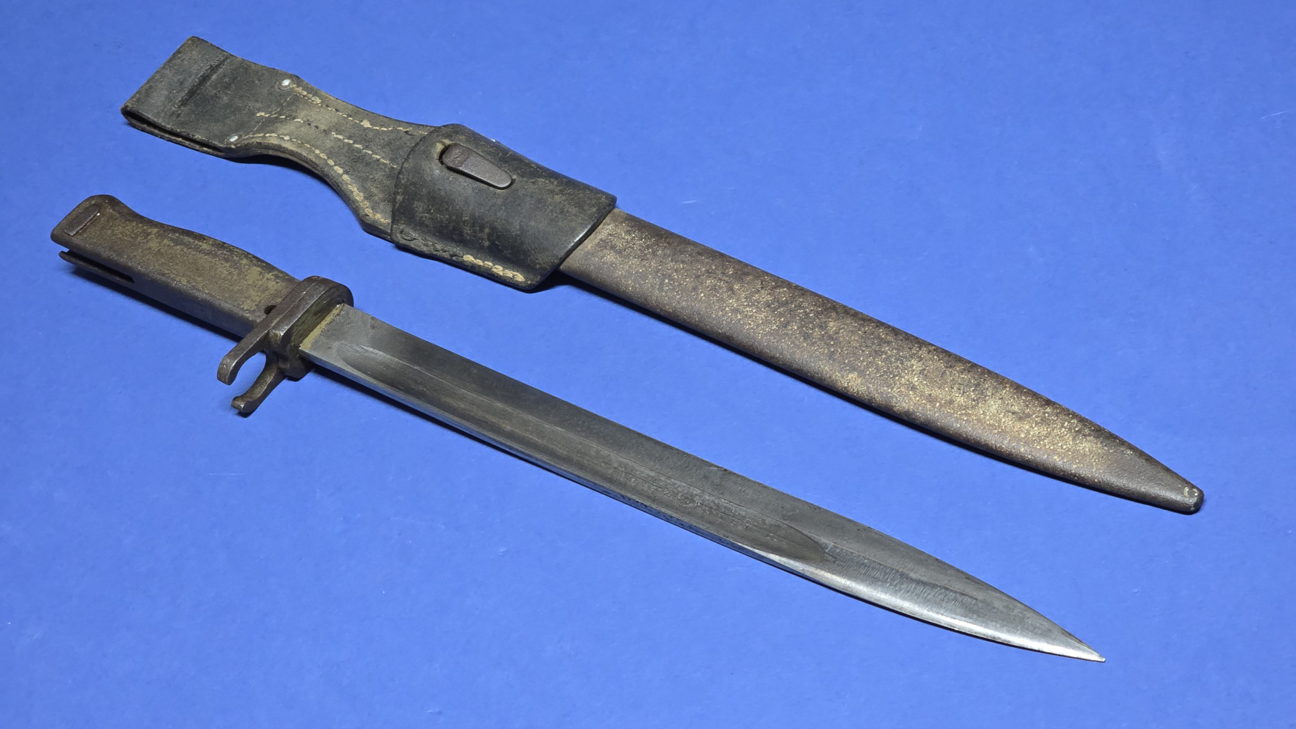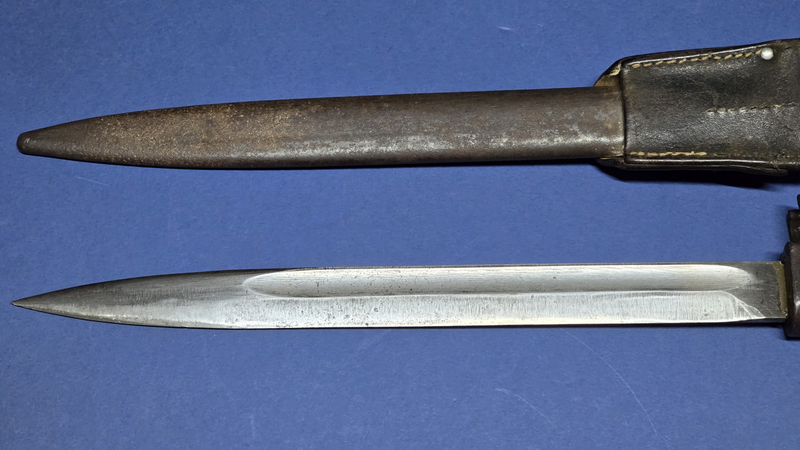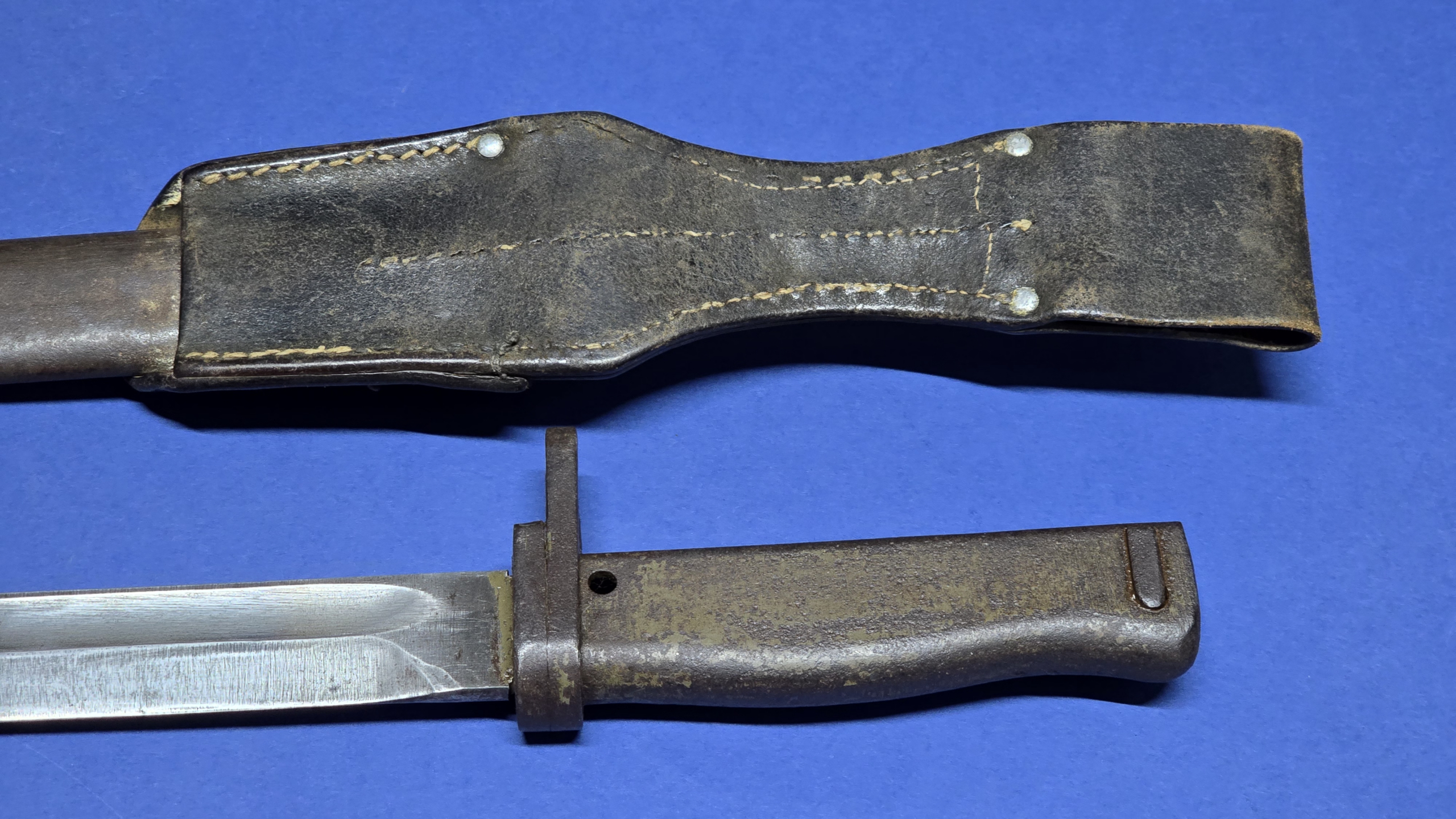 A very solid and honest example of a German ersatz bayonet. The fit of the bayonet within the scabbard is excellent, with smooth insertion and withdrawal. Ageing, finish, and wear across all components are consistent, supporting the view that this is a long-assembled set rather than a later marriage.