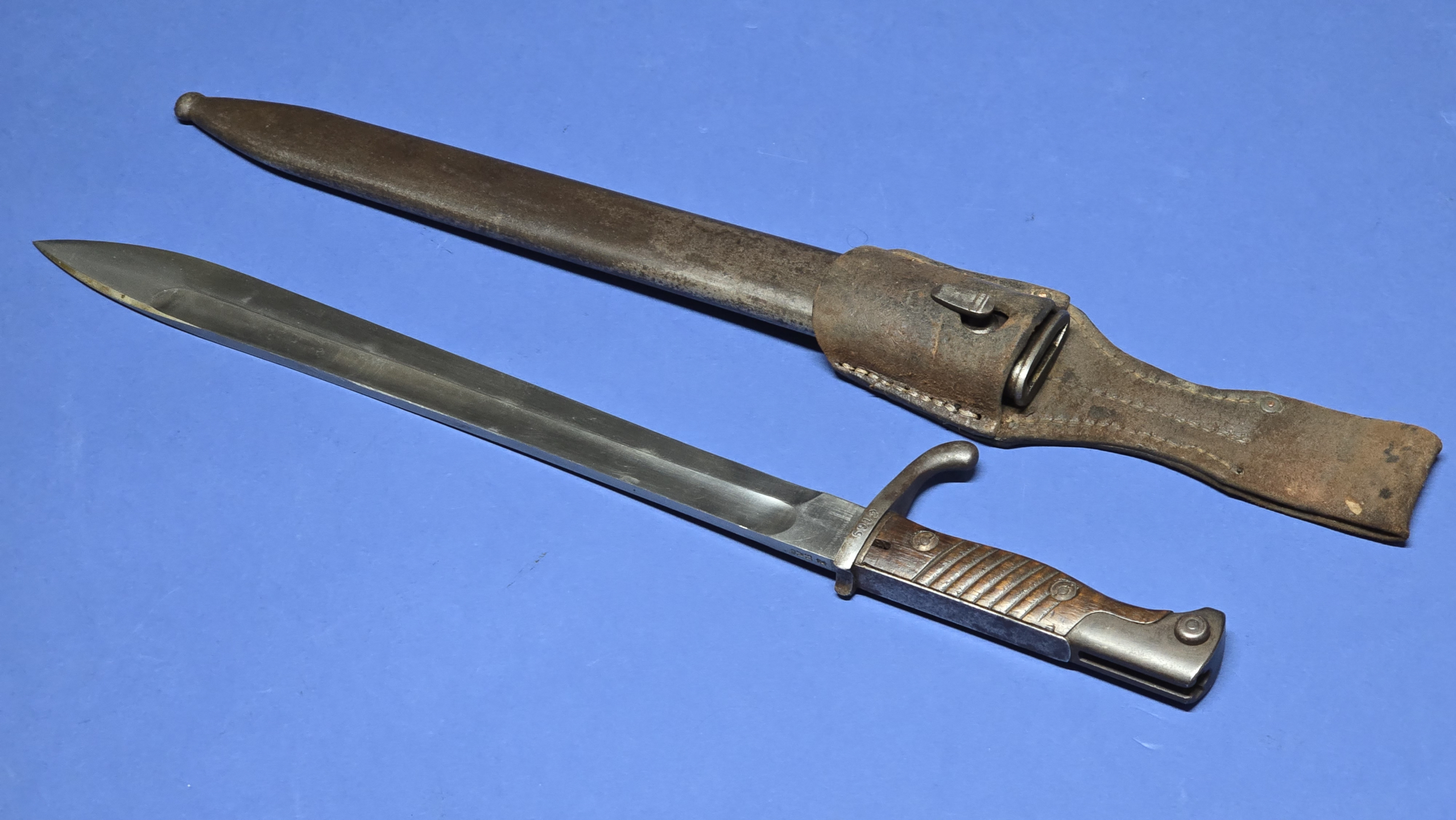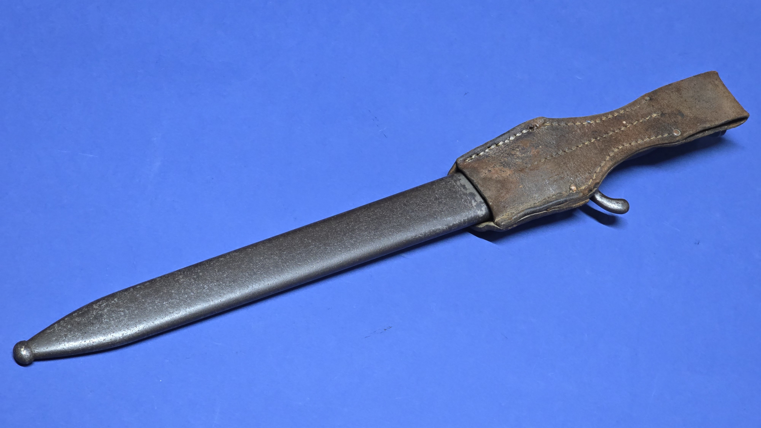 A very presentable and iconic German World War I S98/05 bayonet, widely known amongst collectors as the “Butcher Bayonet” due to its distinctive heavy blade profile which broadens towards the tip. This example is dated 1916 and manufactured by Waffenfabrik Mauser A.G. Oberndorf a/N, one of the principal wartime producers of this pattern.