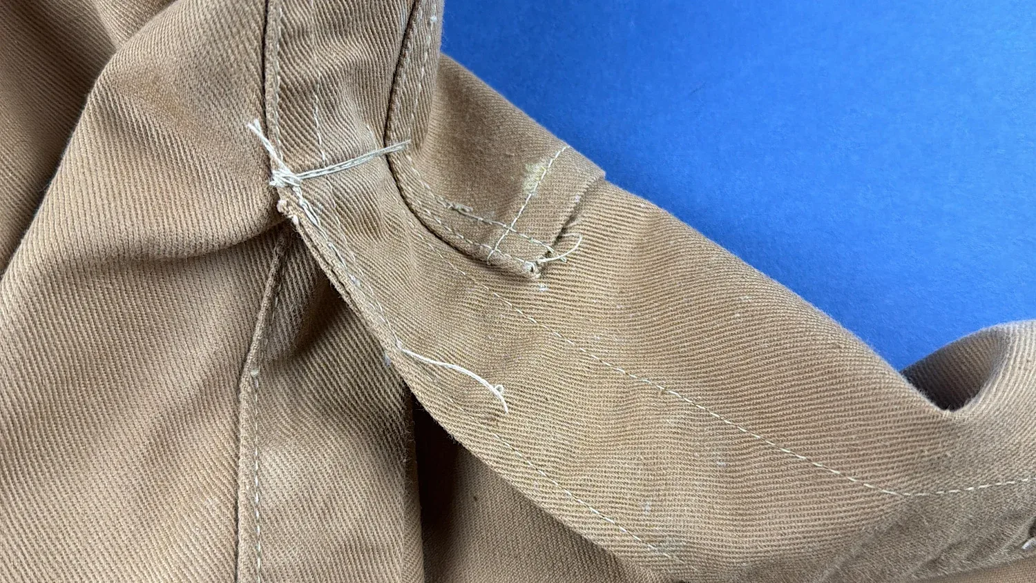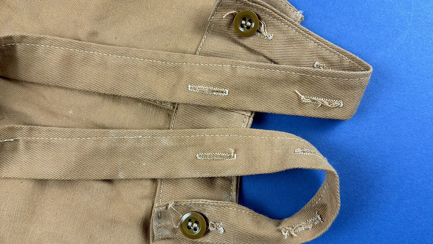 Few garments symbolise the British Home Front more strongly than Women’s Land Army overalls. Worn by the “Land Girls” who replaced male farm labourers serving overseas, these practical working garments became an enduring image of wartime resilience. While badges and paperwork survive in reasonable numbers, genuine labelled uniform pieces such as this are considerably harder to source.