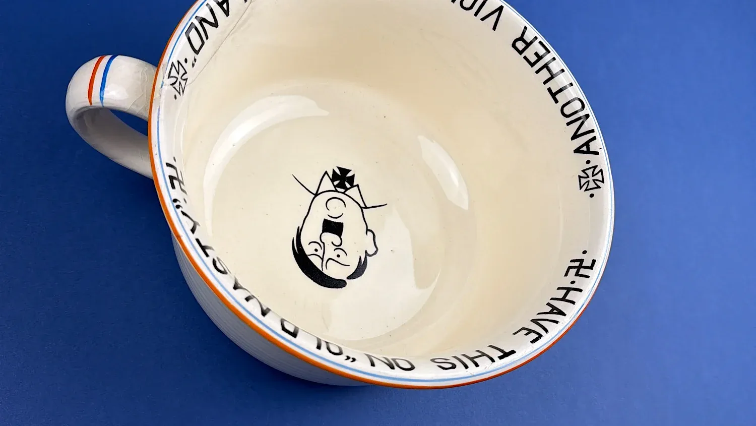 Far from being decorative for its own sake, this type of ceramic ware formed part of Britain’s Home Front morale culture. Humour — often sharp, irreverent, and deliberately crude — was an important psychological weapon during the early months of the war. By reducing Hitler to the subject of domestic satire and quite literally something to aim for when one needs to relieve himself, objects like this allowed ordinary households to participate in symbolic defiance from their own homes.
