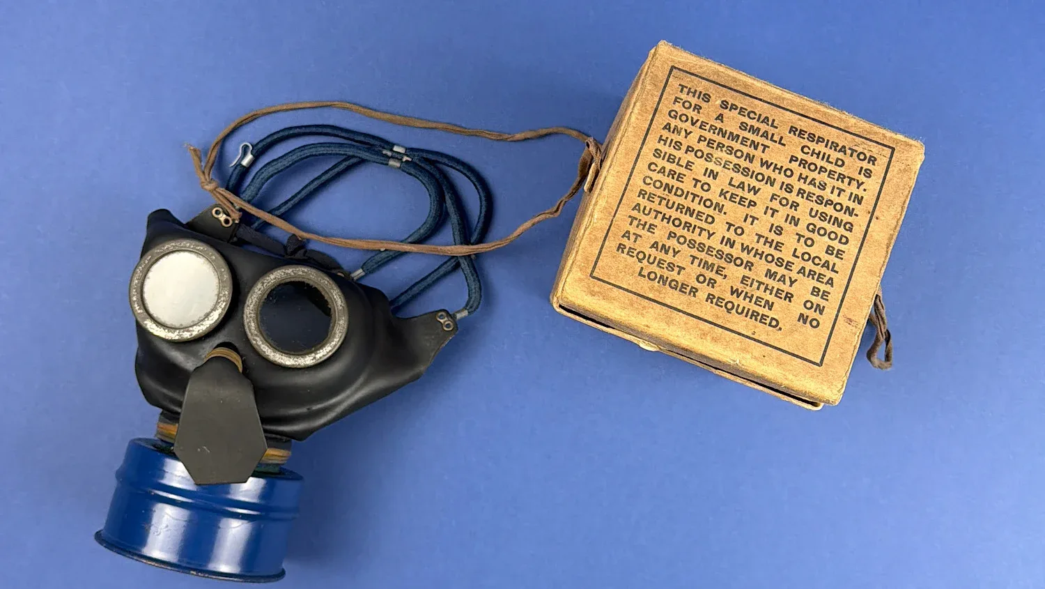 Beyond its technical details, this is a deeply evocative Home Front object. These respirators were entrusted to parents to safeguard their young children in the event of gas attack — kept ready in hallways, cupboards and prams during a period of genuine national anxiety. They represent one of the most poignant aspects of Britain’s civilian wartime preparations: the effort to protect the youngest members of society during uncertain and fearful times.