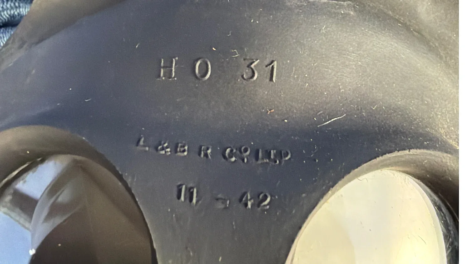 Most importantly, the rubber remains exceptionally soft, supple and flexible throughout. There is no stiffness or hardening, and the mask retains its original shape beautifully. The survival of wartime rubber in this condition after more than eighty years is increasingly unusual, as many examples now suffer from perishing, distortion or seam splitting. In this respect, this example stands comfortably above average.