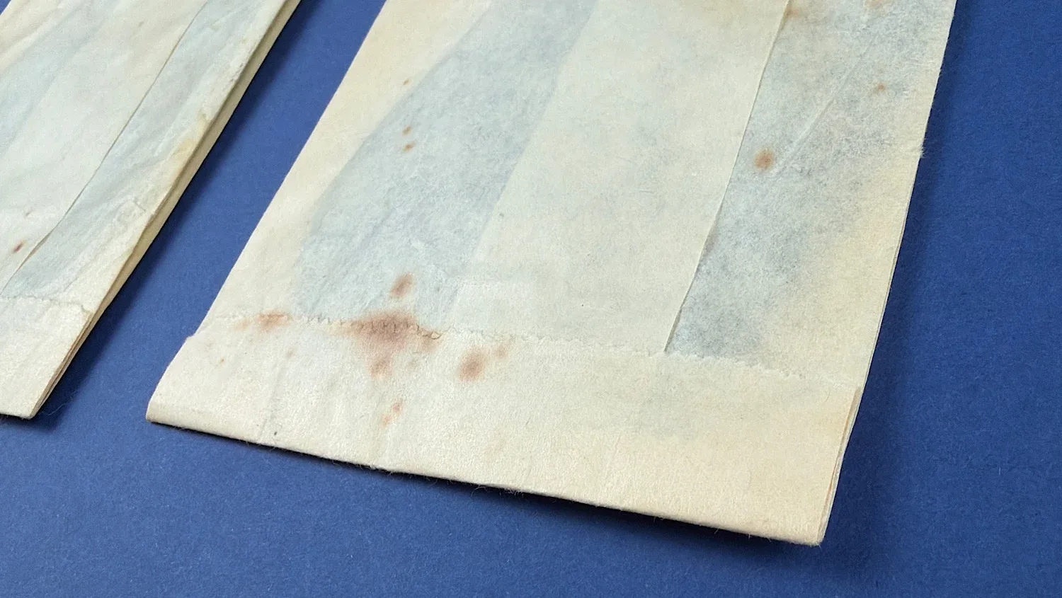 The goggles themselves show honest signs of age and use, with light wear to the frame and some marking to the lenses, but nothing that detracts from their overall appearance or usability as a display piece. Importantly, the rubber frame remains soft and supple, which is becoming increasingly uncommon with these, and adds further to the desirability of the set. The elastic strap remains intact and functional, and the overall feel is exactly what you would expect from a genuine wartime item. The spare lenses and their original paper packets are also in very good condition, completing the set nicely.