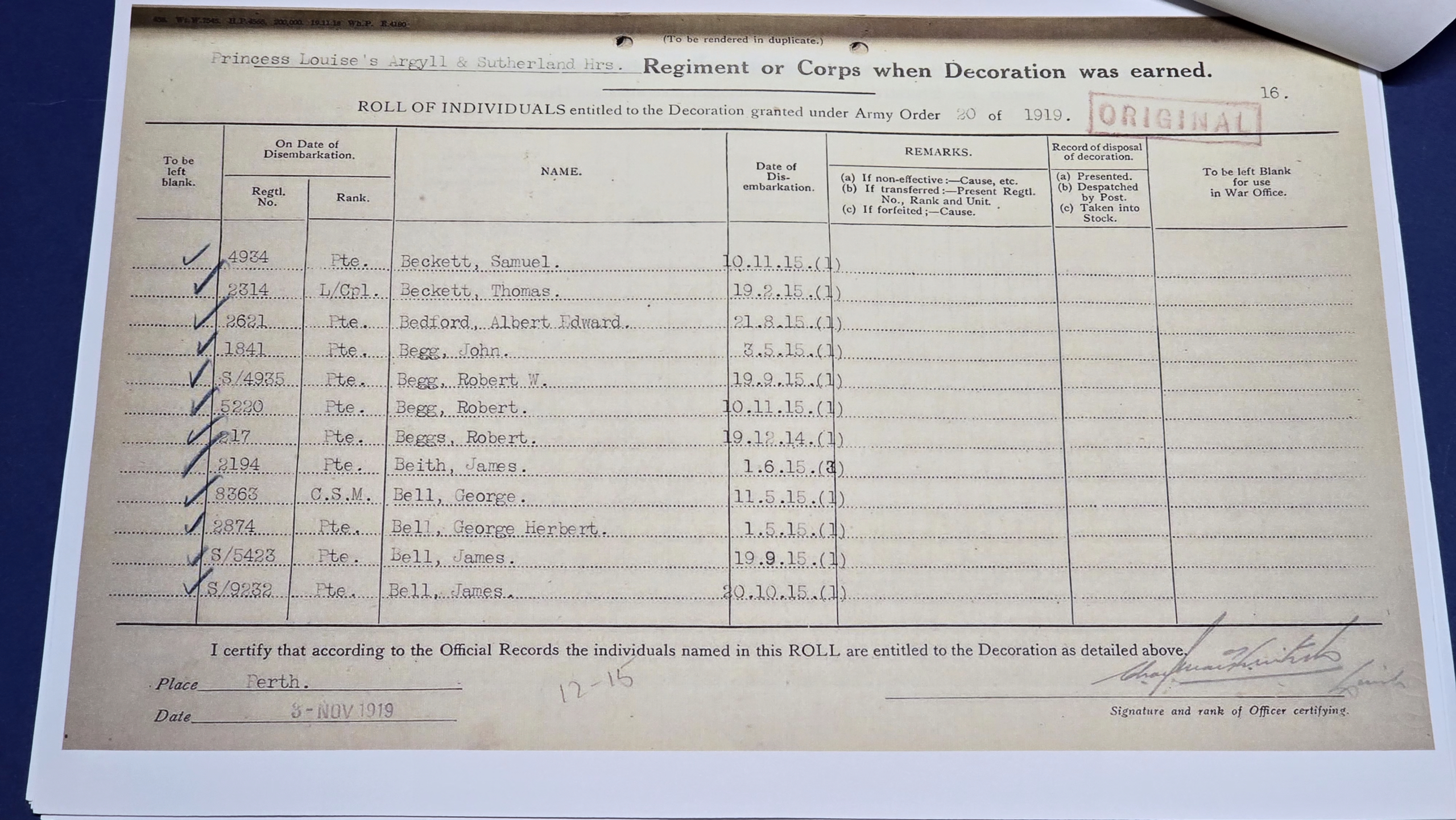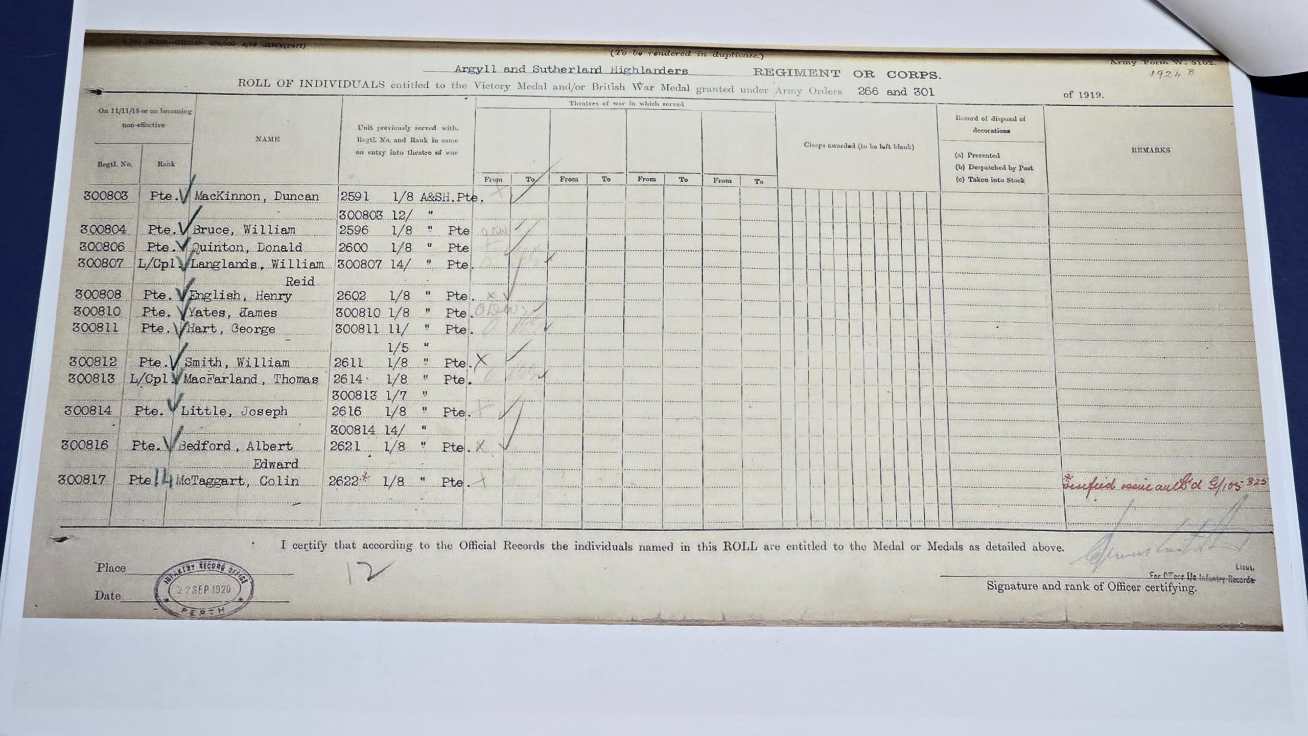 Served in France throughout the war with the 7th Argyll & Sutherland Highlanders.
