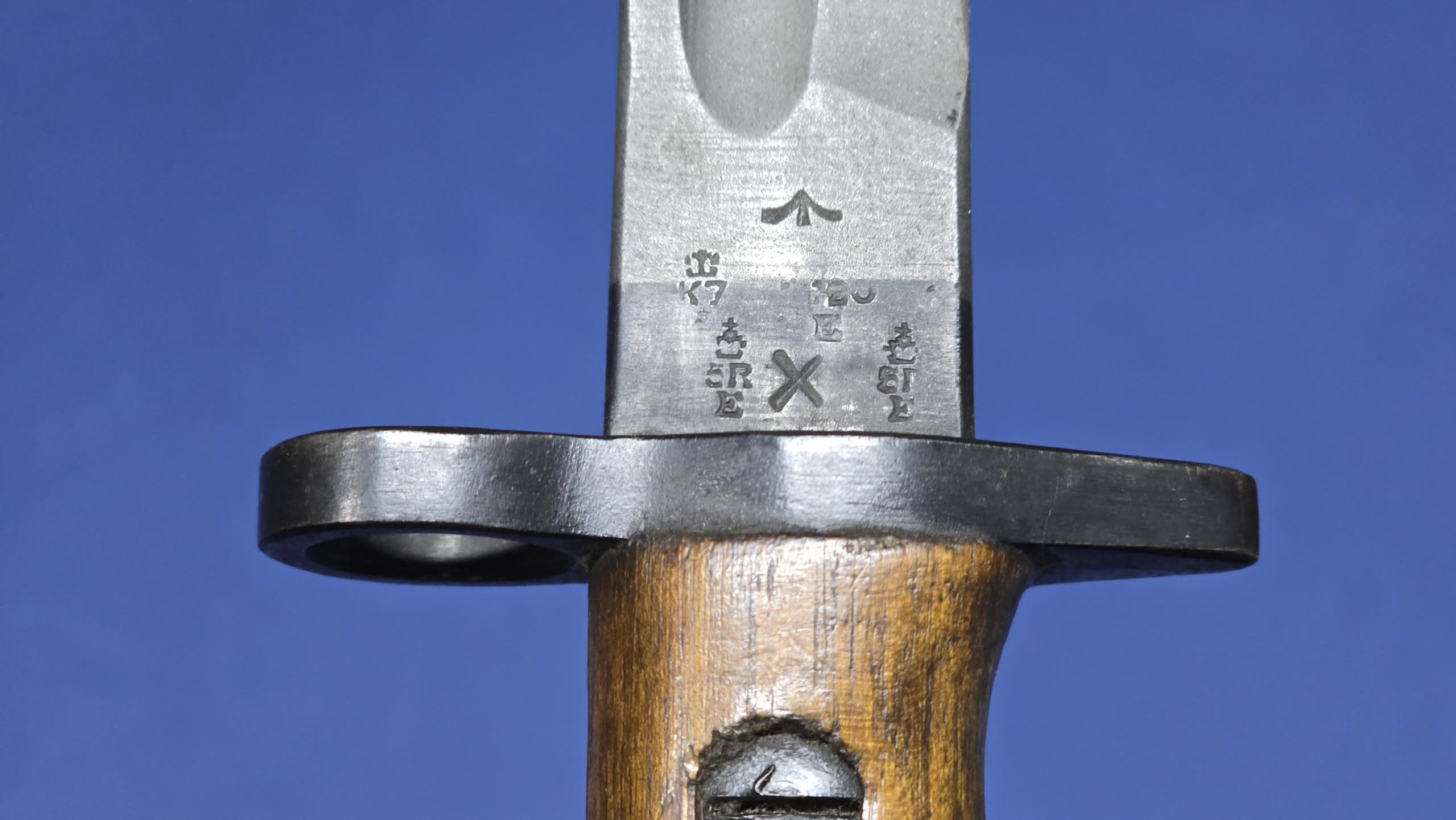 The blade on this example is superb. It retains a crisp profile with a clean fuller and shows only light darkening towards the tip, as visible in the photographs. The blade retains its original factory edge profile and shows no signs of abuse, heavy wear, or post-war re-sharpening, making this an excellent blade overall.