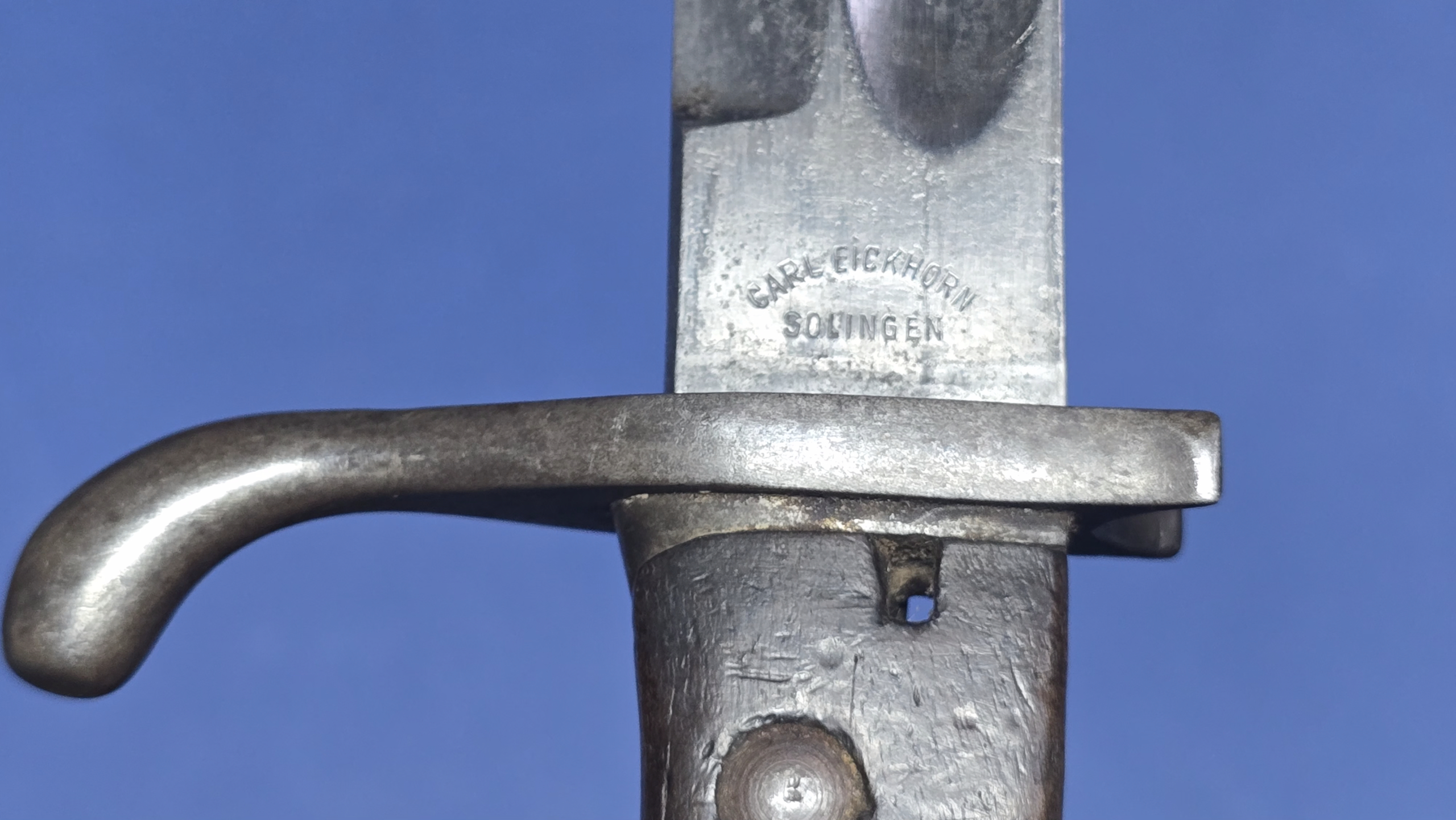 The maker is Carl Eichhorn Solingen, noted here as an uncommon maker for the 98/05 pattern, particularly compared to more frequently encountered producers.
