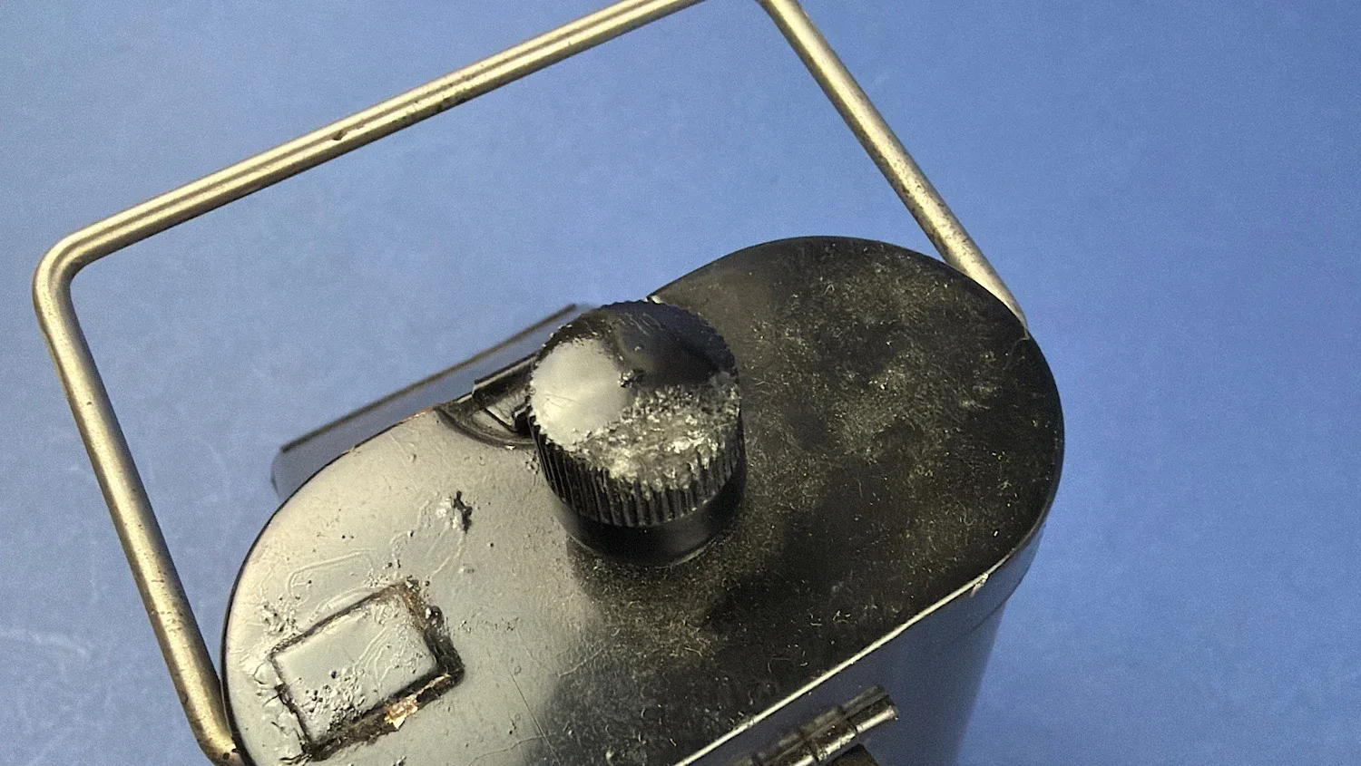 Issued under the Ministry of Health for use by Air Raid Precautions and Civil Defence personnel, lamps like this were an essential part of life on the British Home Front. Designed specifically for blackout conditions, the fitted hood directs light downward, allowing safe movement without risking visibility from the air during bombing raids. It’s a simple but effective piece of wartime design that perfectly captures the realities of civilian life under threat.