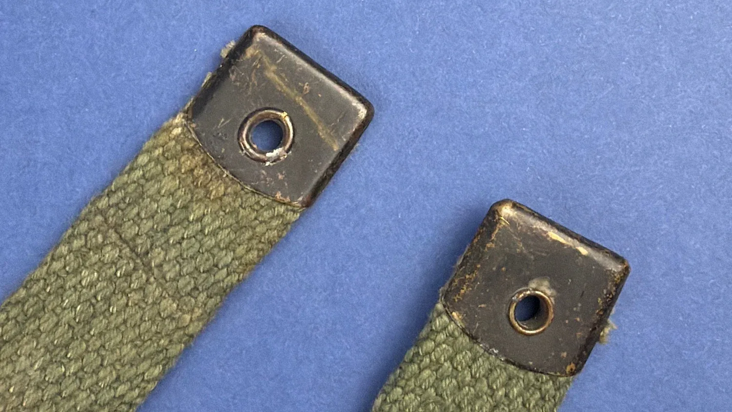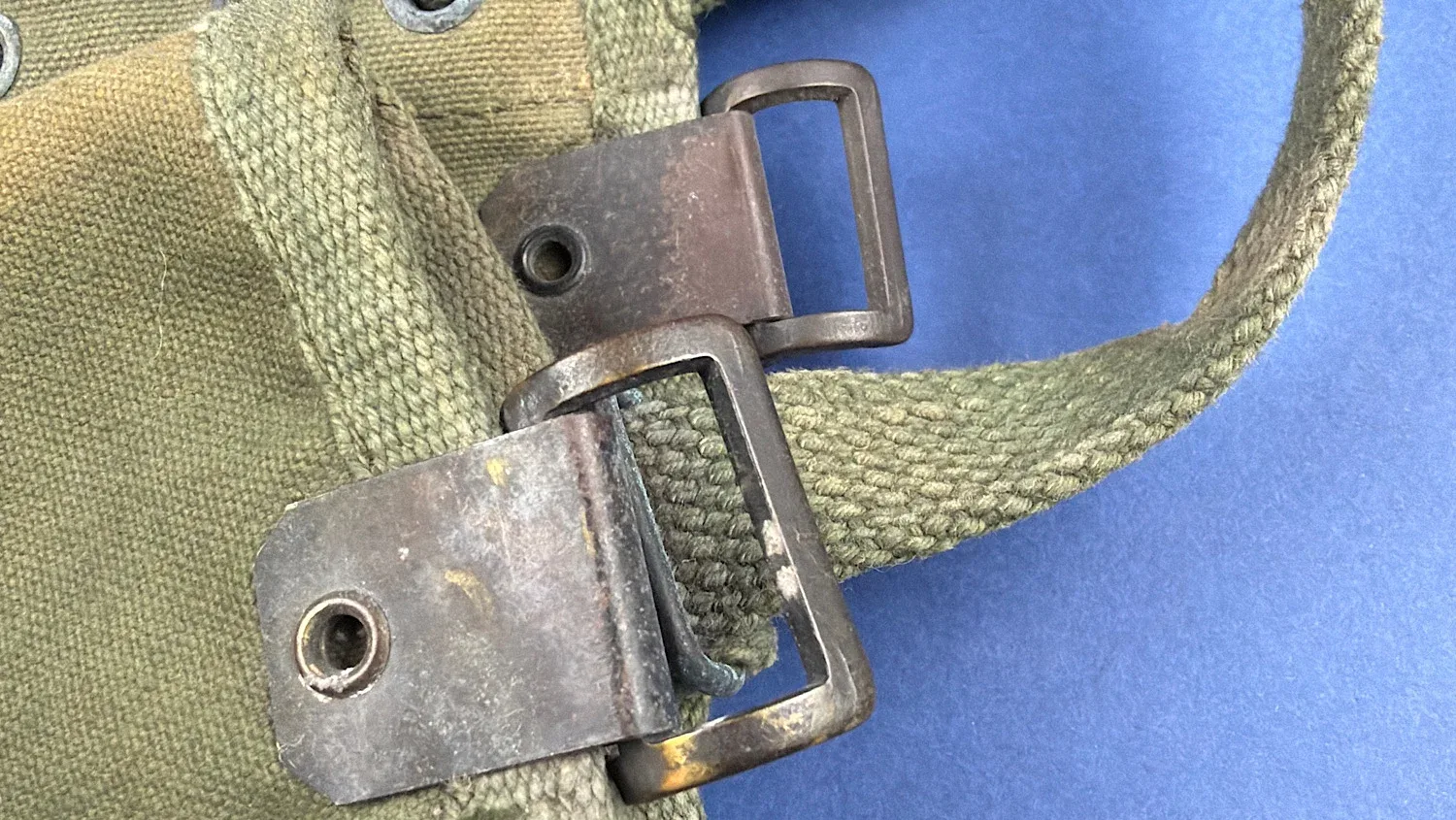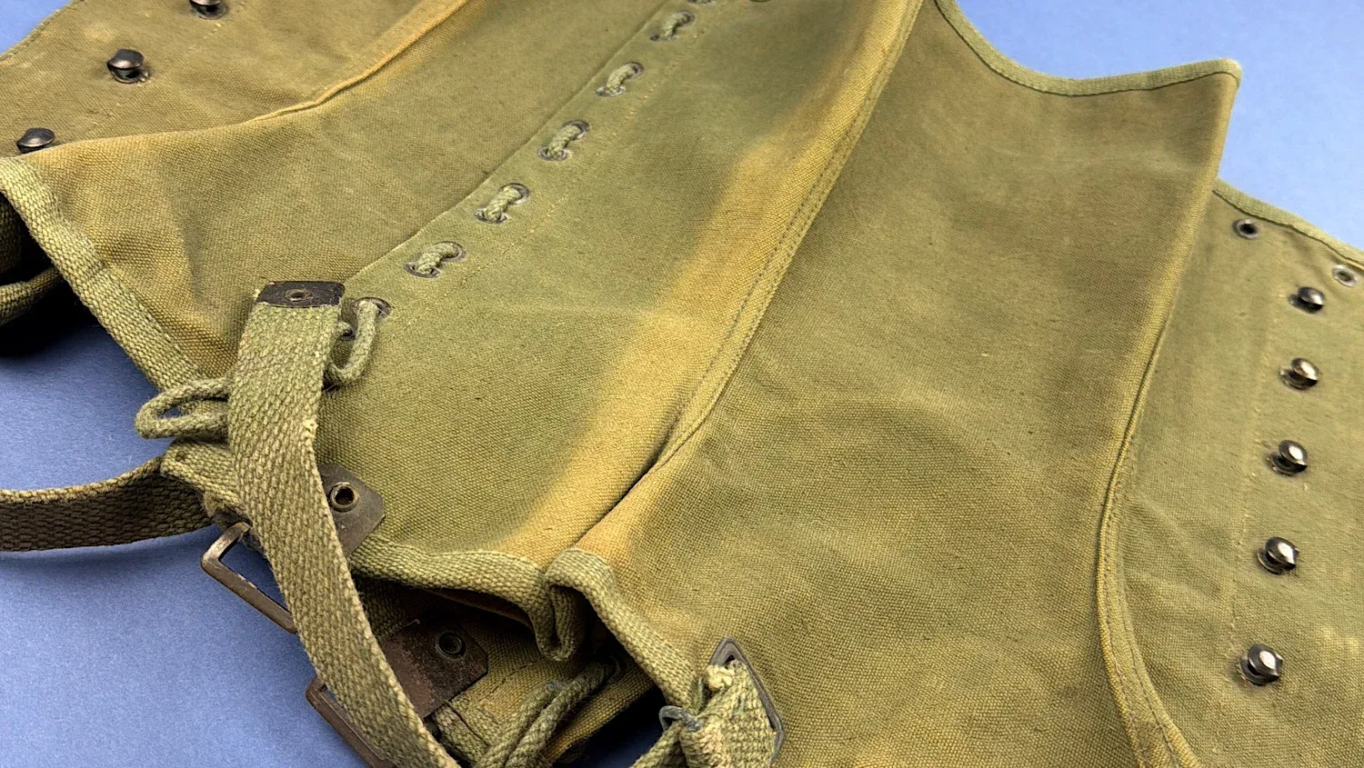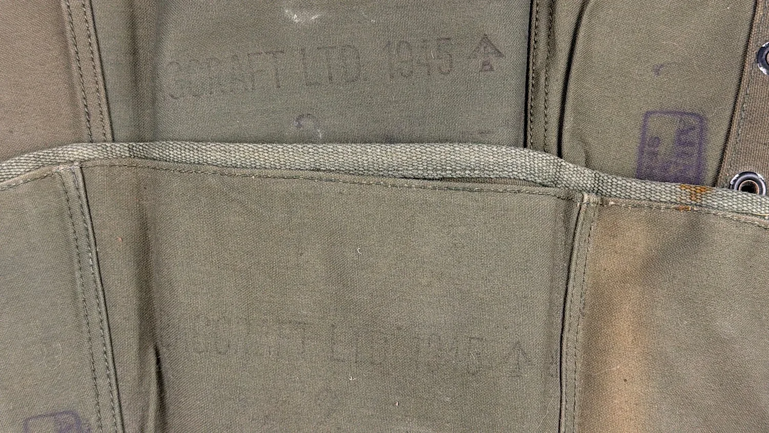 Condition wise, these are in good condition. The stamp is slightly faint but remains readable, although difficult to photograph clearly. Each gaiter retains its original lacing, and all components are present as they should be. There is some light bleaching to the canvas, which suggests they may have been displayed previously, likely as part of a collection. The colour may appear to vary slightly between photographs due to lighting conditions, but both gaiters are a consistent olive drab / ranger green colour in hand and are a matching pair.
