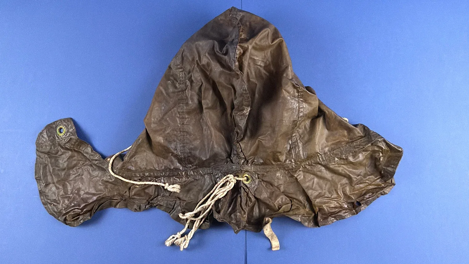 Designed for use by Air Raid Precautions (ARP) personnel, Auxiliary Fire Service (AFS) members, fire watchers and other Civil Defence workers, these protective hoods were intended to be worn over the head and upper body in the event of gas attack. Constructed from rubberised and oil-treated fabric, the material has a waxed mackintosh-like feel, designed to resist chemical contamination and protect clothing and exposed skin.