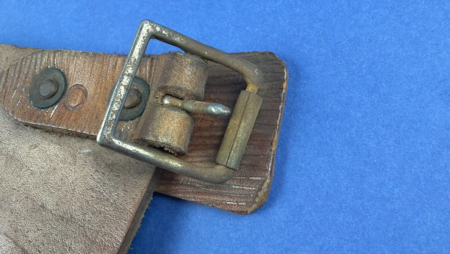 The leather remains solid and structurally sound, with honest service wear and age-related marking throughout. The strap and buckle are intact and functional, and the wartime stamps, while worn in places, remain clearly legible. A strong and evocative piece of named WW2 Home Front Civil Defence equipment.