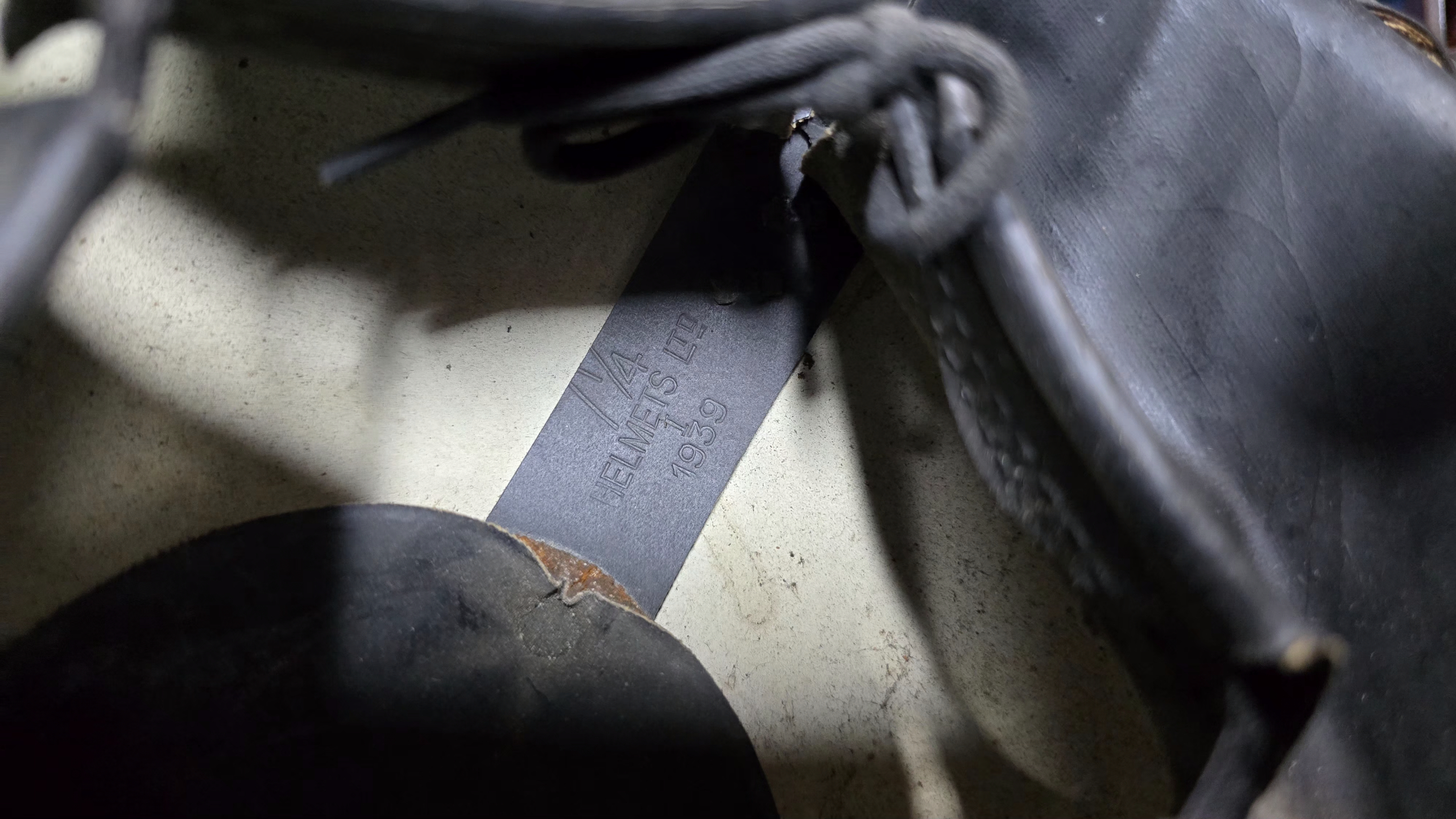 Liner is fully intact and displays the early ovel pad,  and stamped Helmets Ltd and dated 1939, confirming early-war production. The liner is complete but shows age-related wear, including stiffening to the pad, which is entirely typical for original liners of this period.