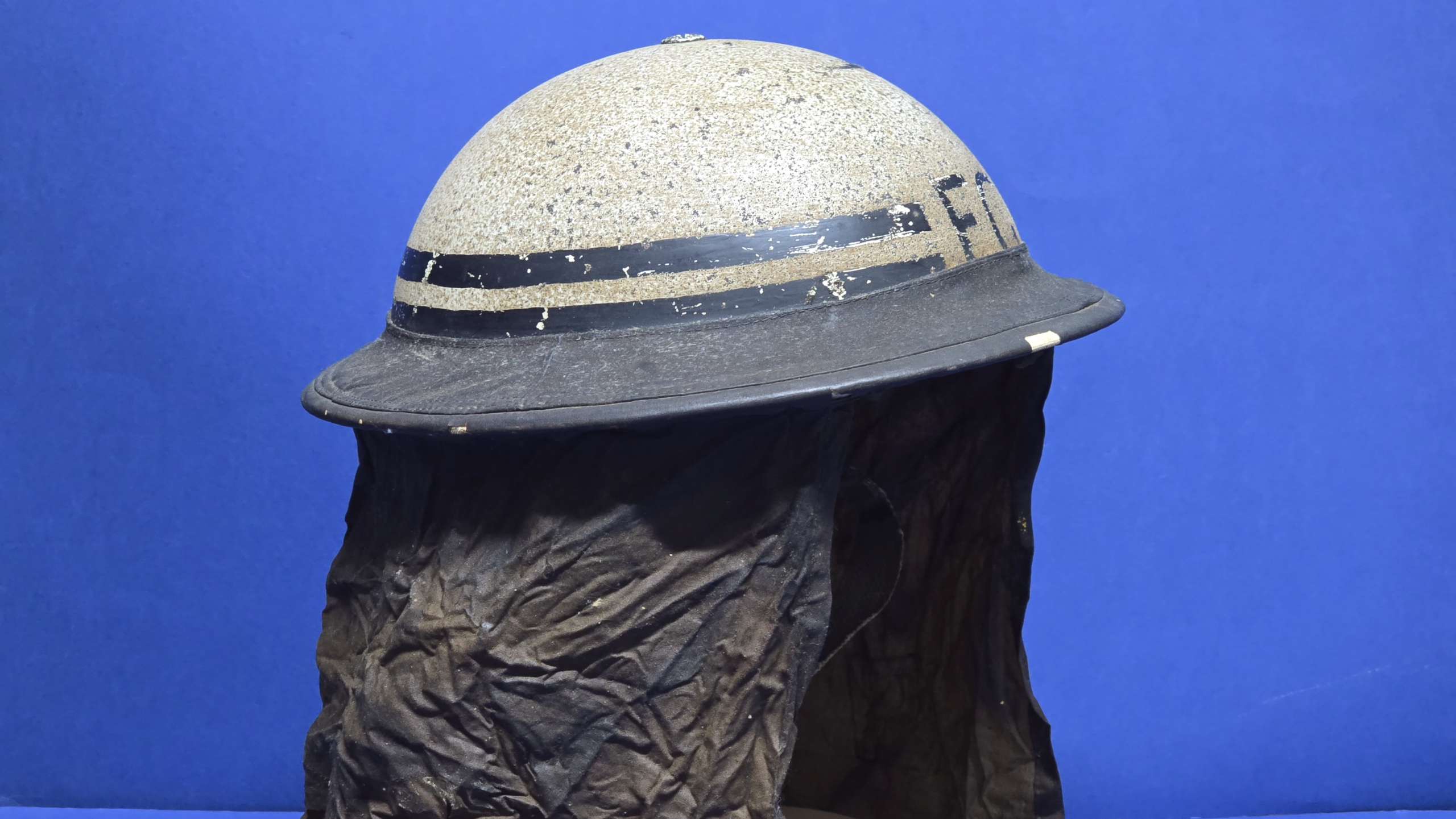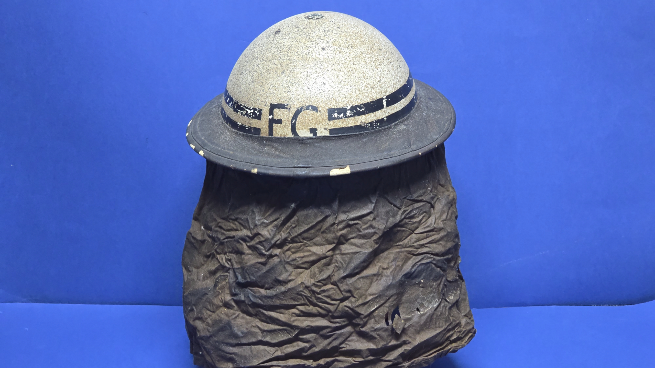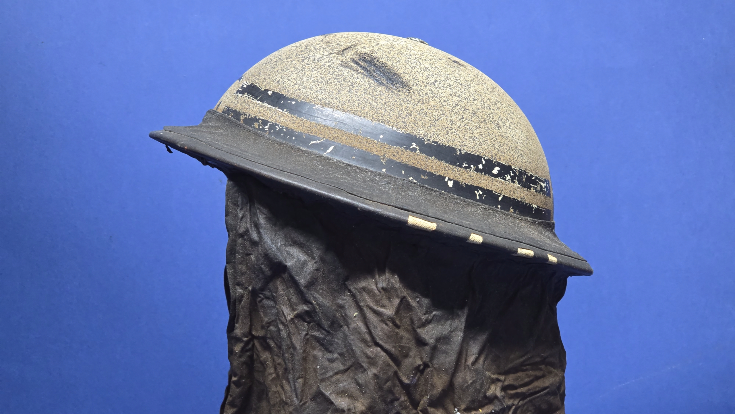 WW2 British Fire Guard Mk II Helmet – 1939 Liner – First Pattern Gas Curtain