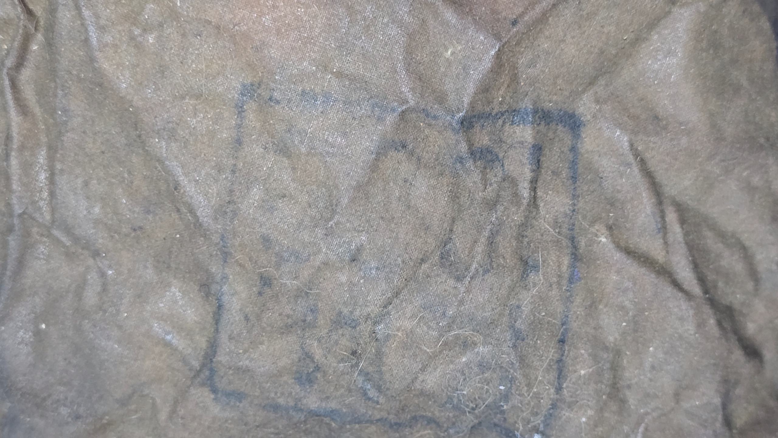 A faint ink stamp is present on the curtain, though it is indistinct and cannot be positively identified. No attempt has been made to interpret or enhance this marking.