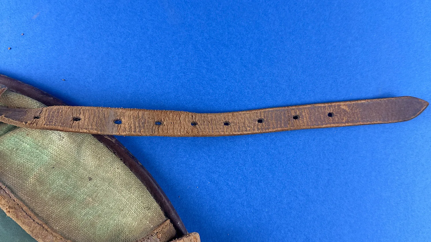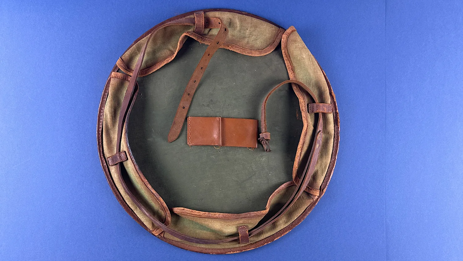 Condition-wise, it’s very well preserved. The leather is soft and supple, the buckle functions perfectly, and all strap holes remain intact. The internal leather loops are firm and retain their shape — ideal for holding razors or brushes. The enamel bowl itself has expected wear with small areas of loss exposing the metal beneath, but no dents – remarkable given its age and use.