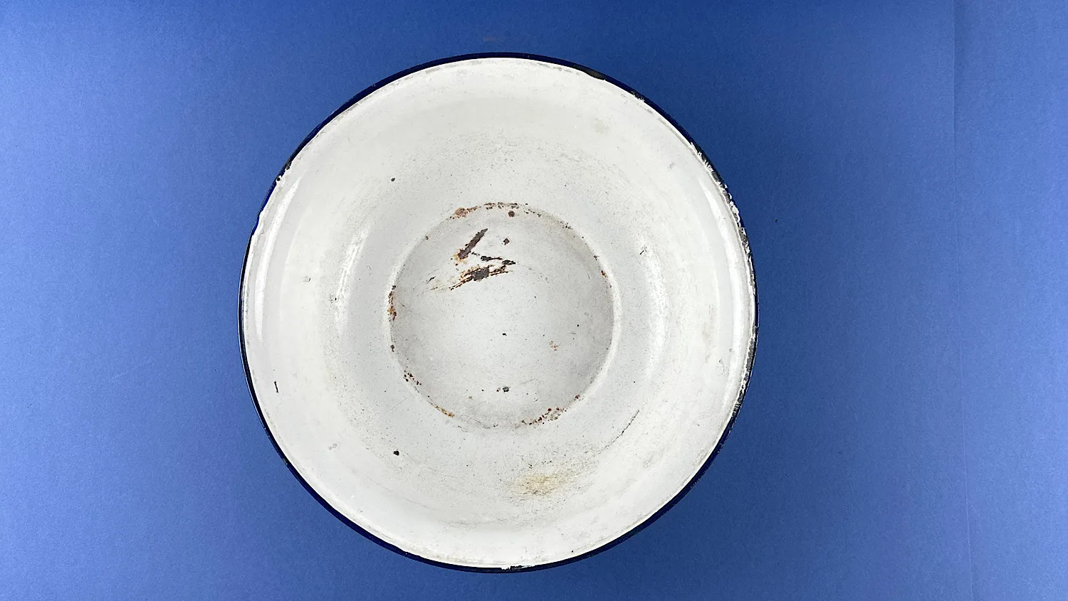 This is a WW2 era British officer’s enamel wash bowl, complete with its original leather-bound carrying case and distinctive hand-applied markings. It’s a fascinating piece with plenty of history – the kind of item that invites research and rewards close study.