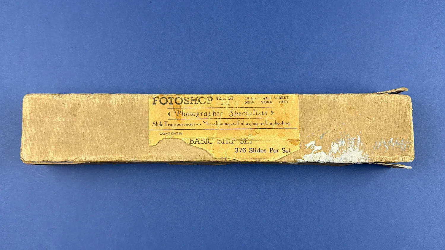 This is an original WW2-era professional photographic slide group, forming part of a “Basic Ship Set” produced by Fotoshop, a commercial photographic services firm based in New York City. The surviving box contains 186 individually mounted photographic slides, representing a complete and intentionally filled section of a larger reference set originally catalogued as 376 slides per set.
