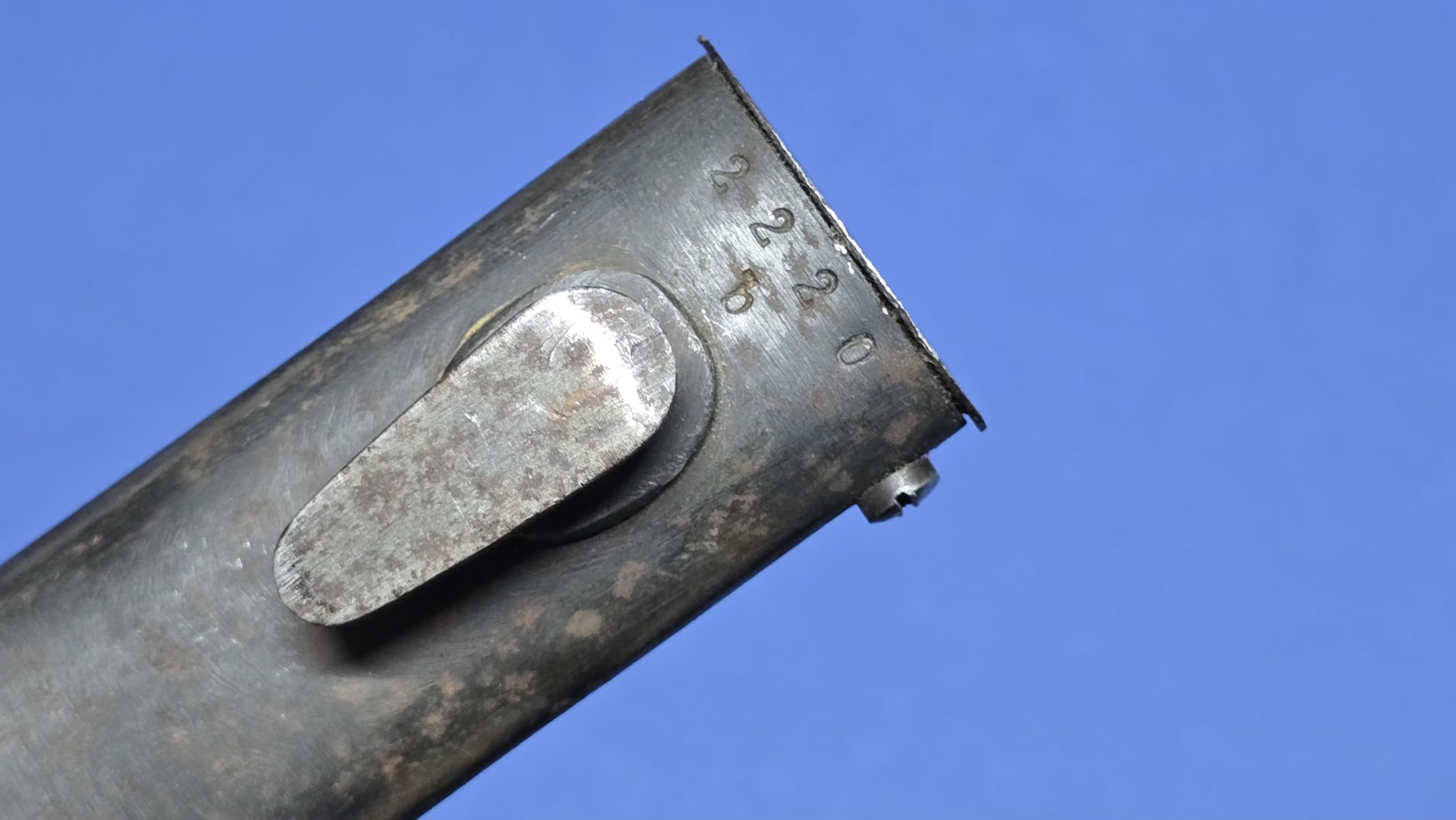 By 1944, German wartime production was under increasing strain. Materials were harder to source, skilled labour was limited, and output demands were high. As a result, K98 bayonets from this period often display simplified finishes, rougher machining, and less attention to detail compared to early war examples.