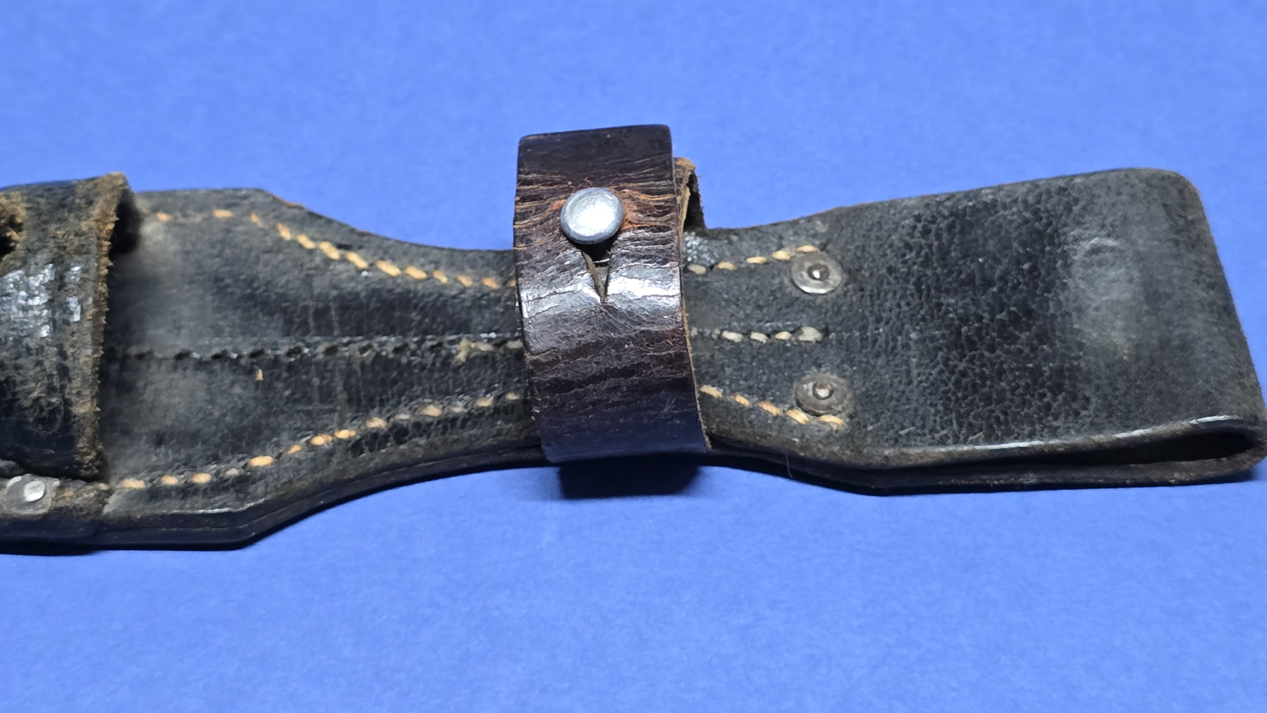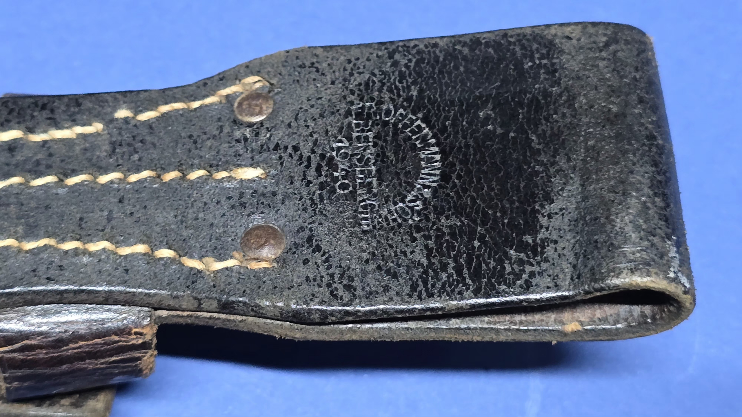 A solid and honest example of a WWII German K98 bayonet frog, clearly maker marked and dated 1940.
