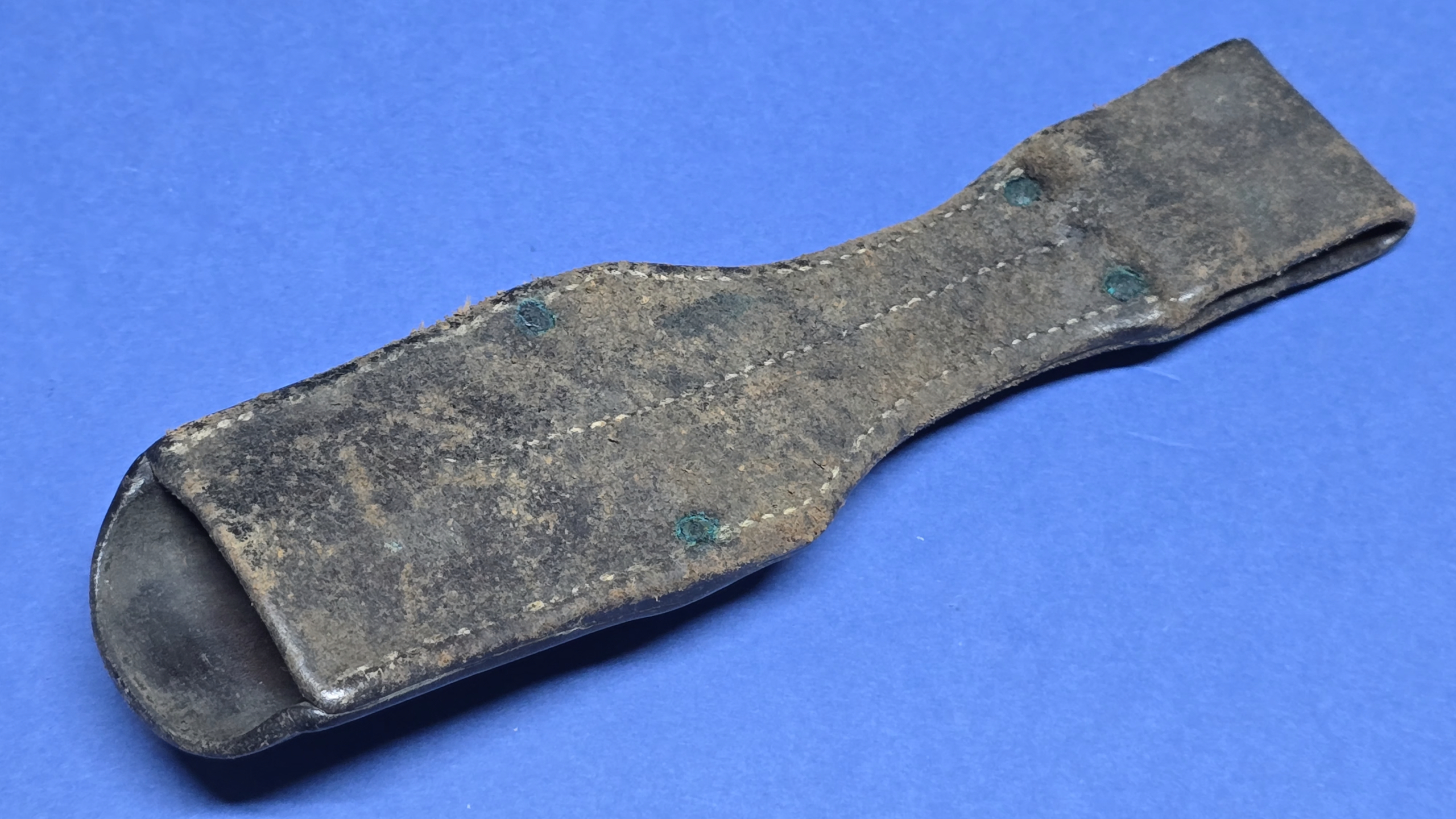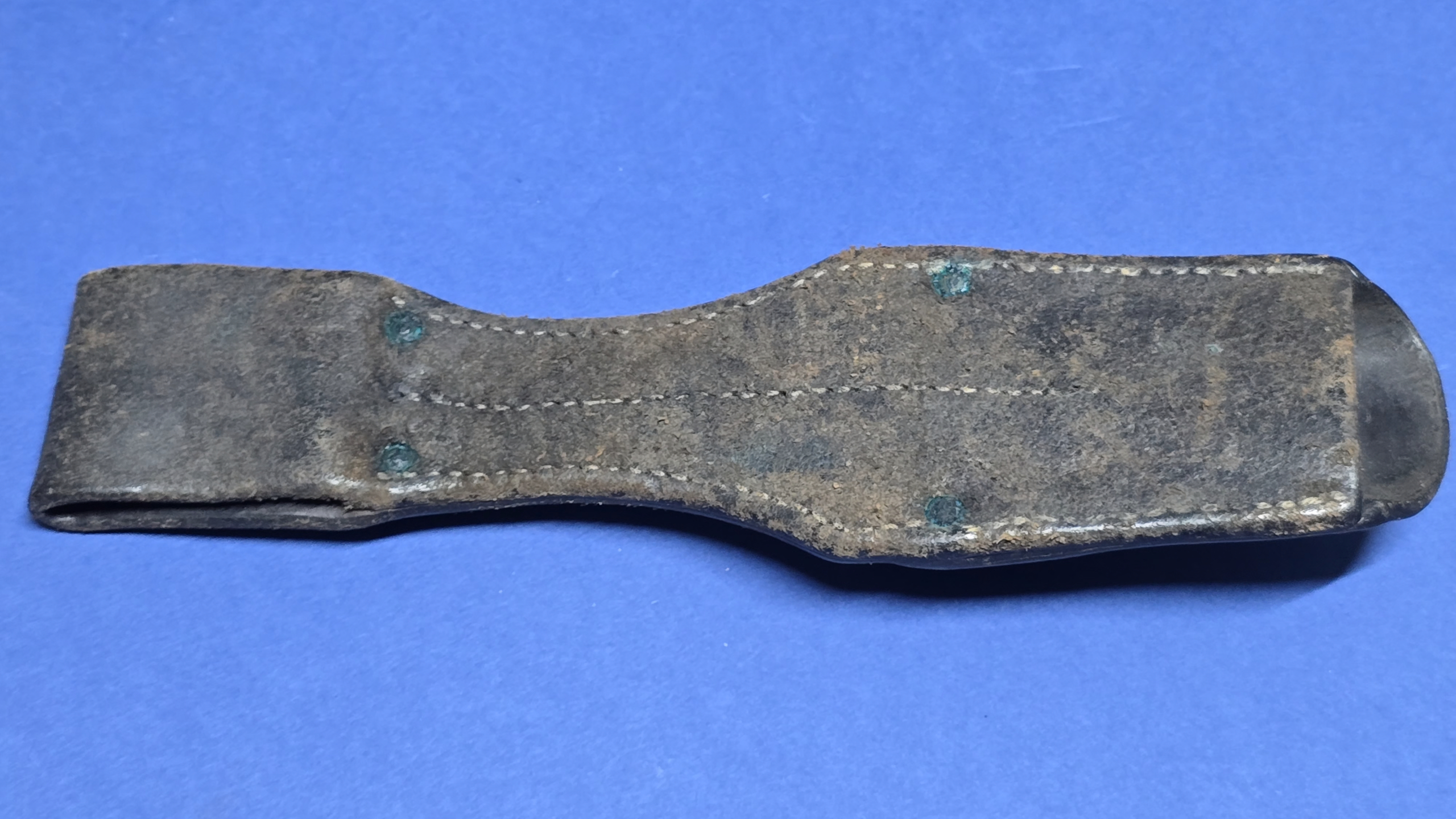 Original WWII German K98 bayonet frog. A well-used but honest example that shows genuine service wear while remaining structurally sound throughout. This is not a mint frog, but it is a solid, period piece that would still improve the presentation of a good K98 bayonet.