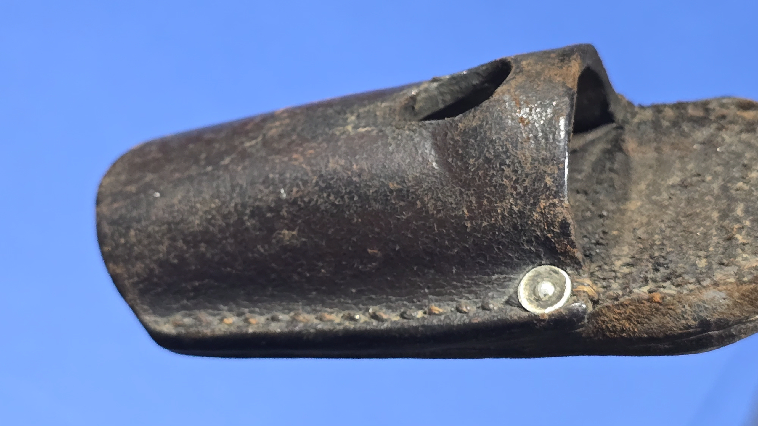 A genuine WW2 German K98 brown leather bayonet frog – a nice, honest example showing age and service use but still perfectly respectable. Brown frogs were used by the Heer (Army) and Luftwaffe, alongside the more common black types. This example remains strong, with all stitching and rivets intact.
