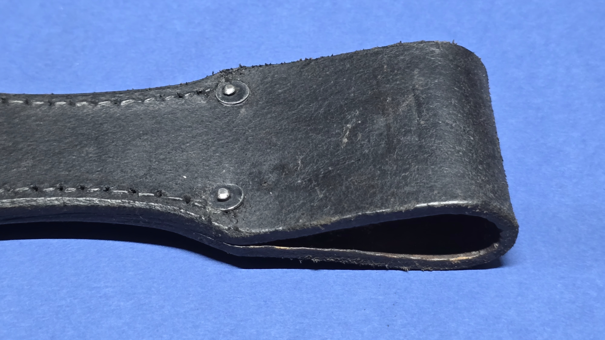 The leather is in excellent condition with no rips, tears, or any signs of damage. The frog shows minimal wear, with all stitching being firmly in place, with no repairs. It’s a tidy example that has survived better than most frogs from this period. The original four rivets are all present, and the makers name and date are stamped on the reverse. (see photos)