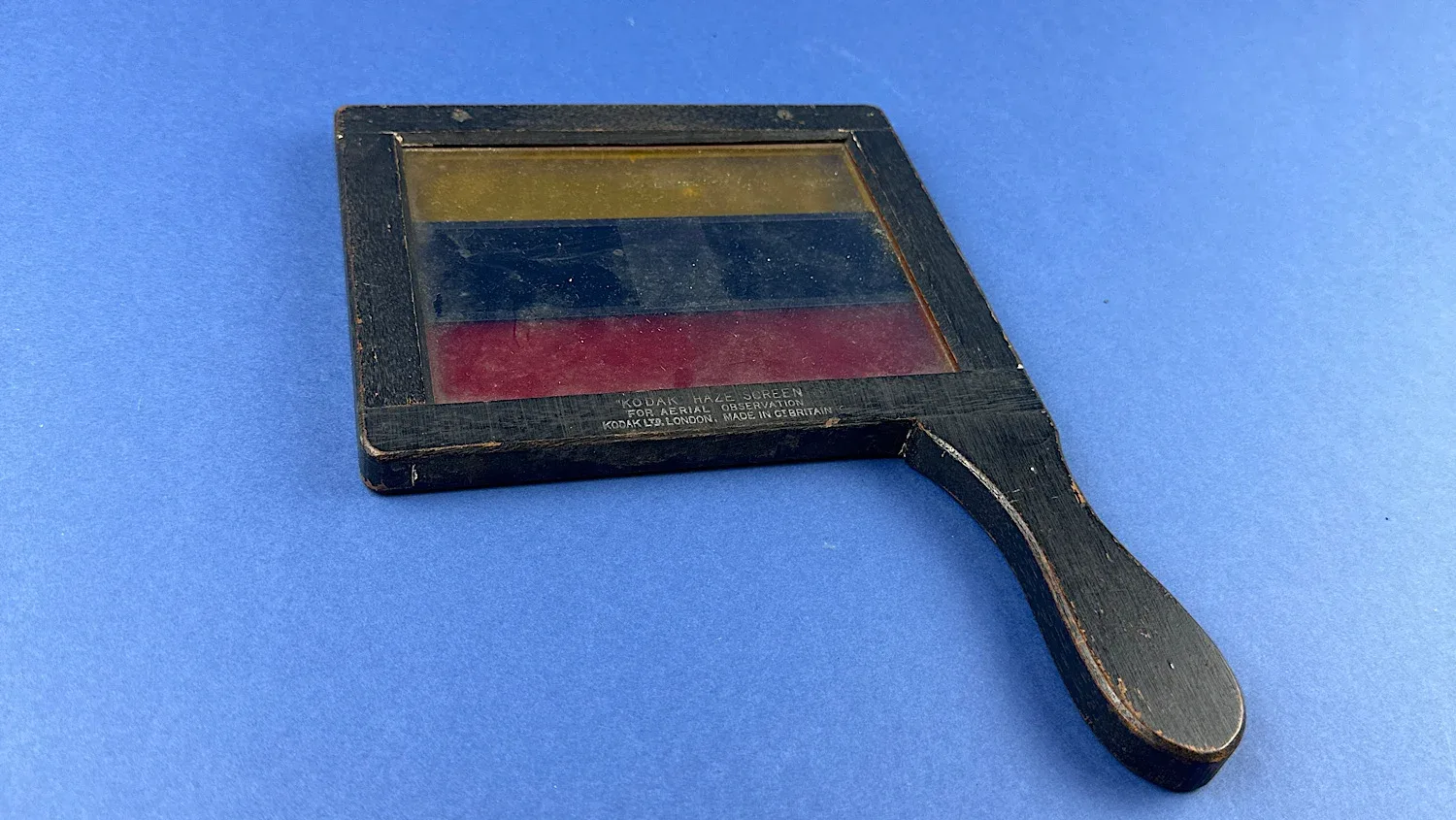Manufactured by Kodak Ltd. London, these haze screens were designed to improve visibility when viewing terrain from the air or analysing reconnaissance imagery. By filtering specific wavelengths of light, they helped reduce atmospheric haze, glare and contrast issues — allowing RAF crews and photographic interpreters to pick out crucial details that would otherwise be lost. Different coloured sections were used depending on conditions, with yellow typically aiding visibility in mist or haze, making this a genuinely practical tool used in real wartime intelligence work.