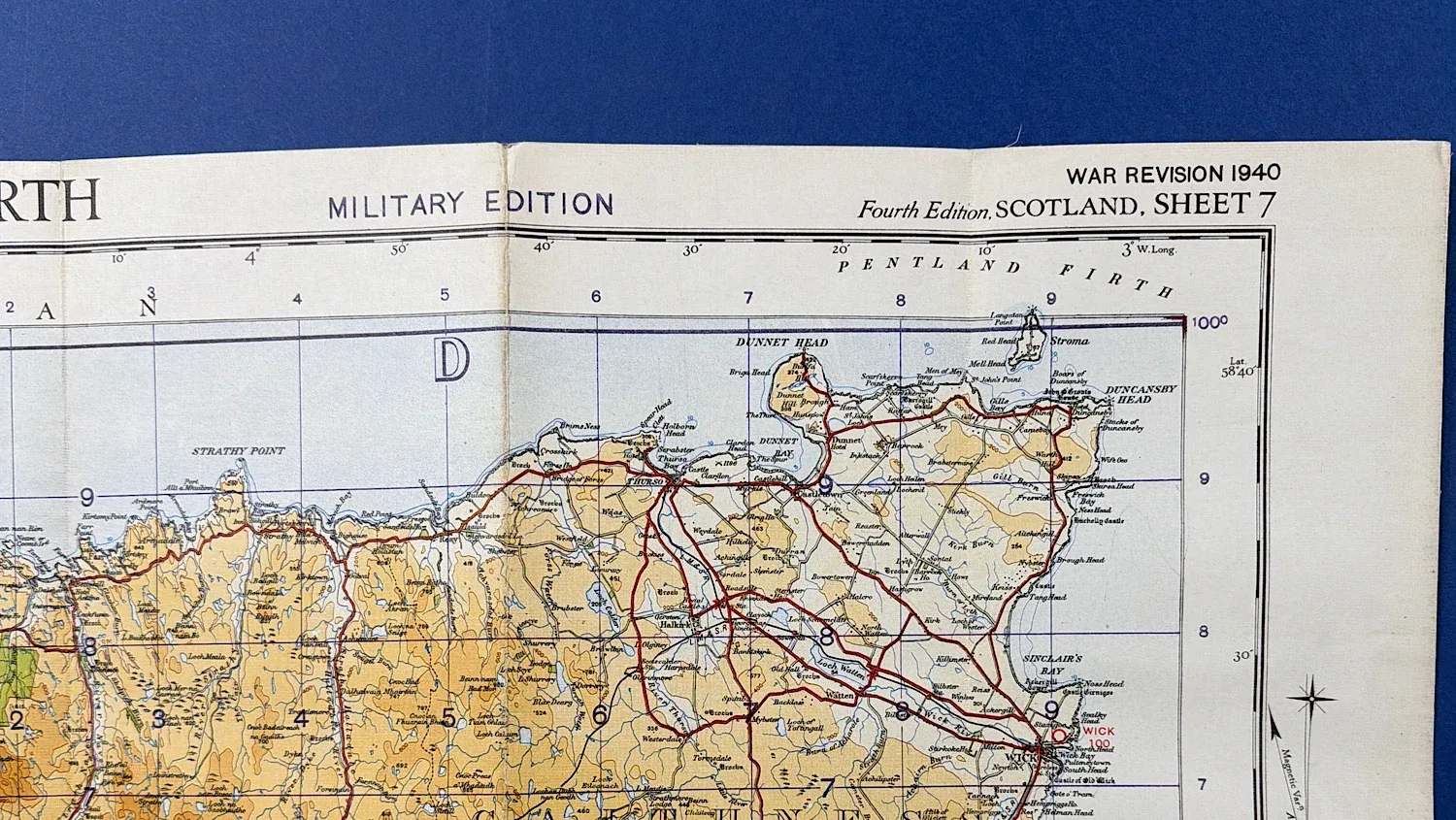 Quarter-inch Ordnance Survey maps were designed to provide a wide-area overview of terrain, transport routes, coastal features, and key settlements, making them particularly useful to Home Guard units, Civil Defence organisations, and other Home Front services. Covering the northern Highlands and coastal regions of Scotland, this example represents an authentic piece of British WW2 Home Front mapping and wartime ephemera, retaining the distinctive illustrated cover artwork associated with the period.