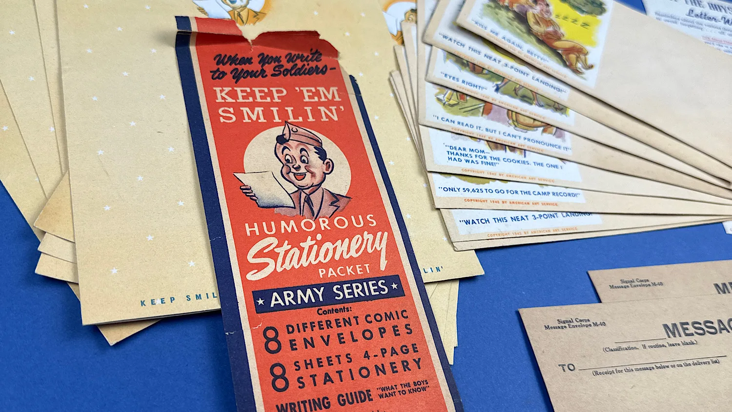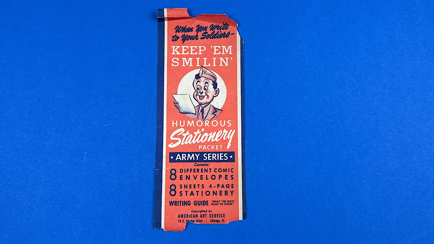 WW2 US Army Keep ’Em Smilin’ Humorous Stationery Packet with Envelopes & Writing Guide c.1942