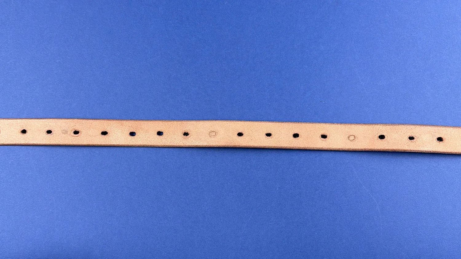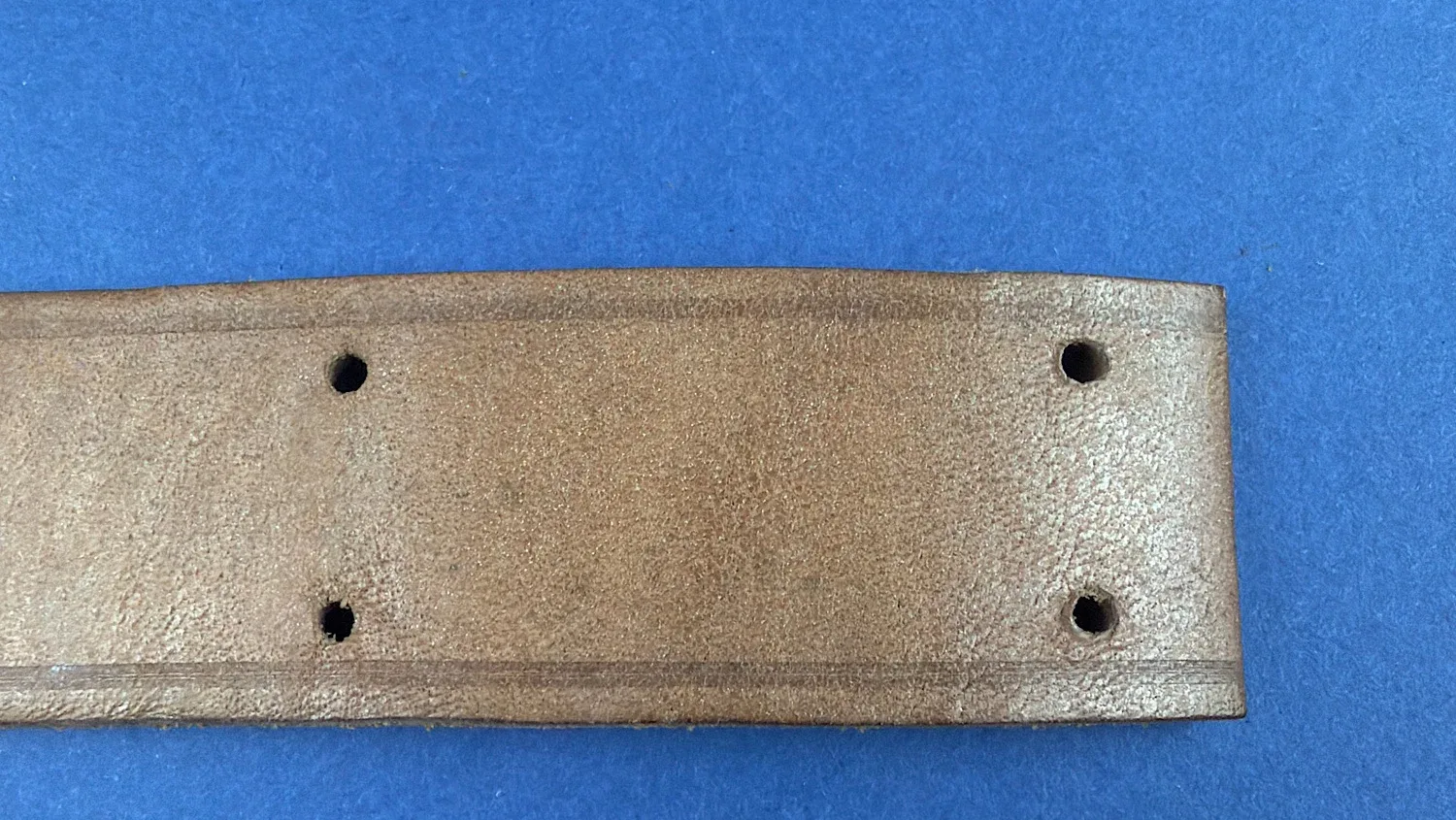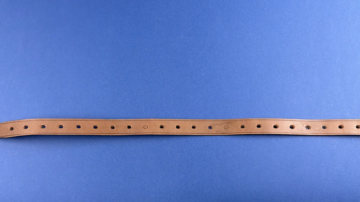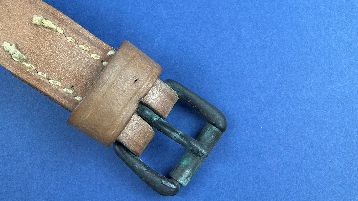 Condition is very good overall. The leather remains supple with no cracking or stiffness, and the stitching is intact. The metal fittings show light age-related patina but remain solid and functional. There are two adjustment holes that haven’t been completely punched, suggesting the strap was never fitted or used, and has survived in near-issued condition. The original box is present and complete, though it does show expected wartime wear including edge rubbing, minor crushing, and some light marking, all consistent with age and storage.