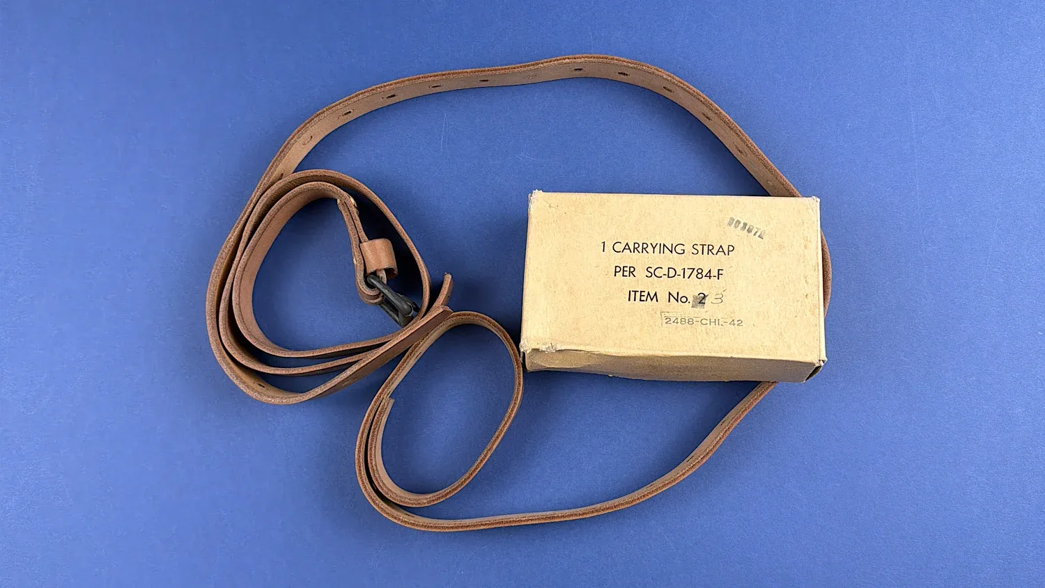 This is an original WW2 U.S. Signal Corps carrying strap, dated 1942 and complete with its original issue box.